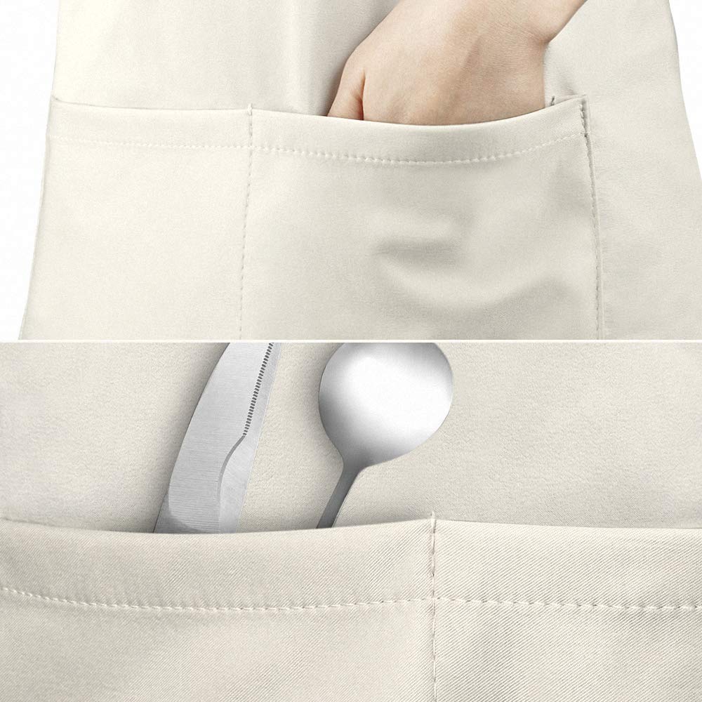 - design Deux grandes poches- la poche avant du tablier est conçue avec deux grandes poches. Il sera plus pratique de ranger les téléphones portables, les recipient d’assaisonnement, des thermomètres à viande, des recettes de cuisine, etc. Rendre la cuisine plus facile.