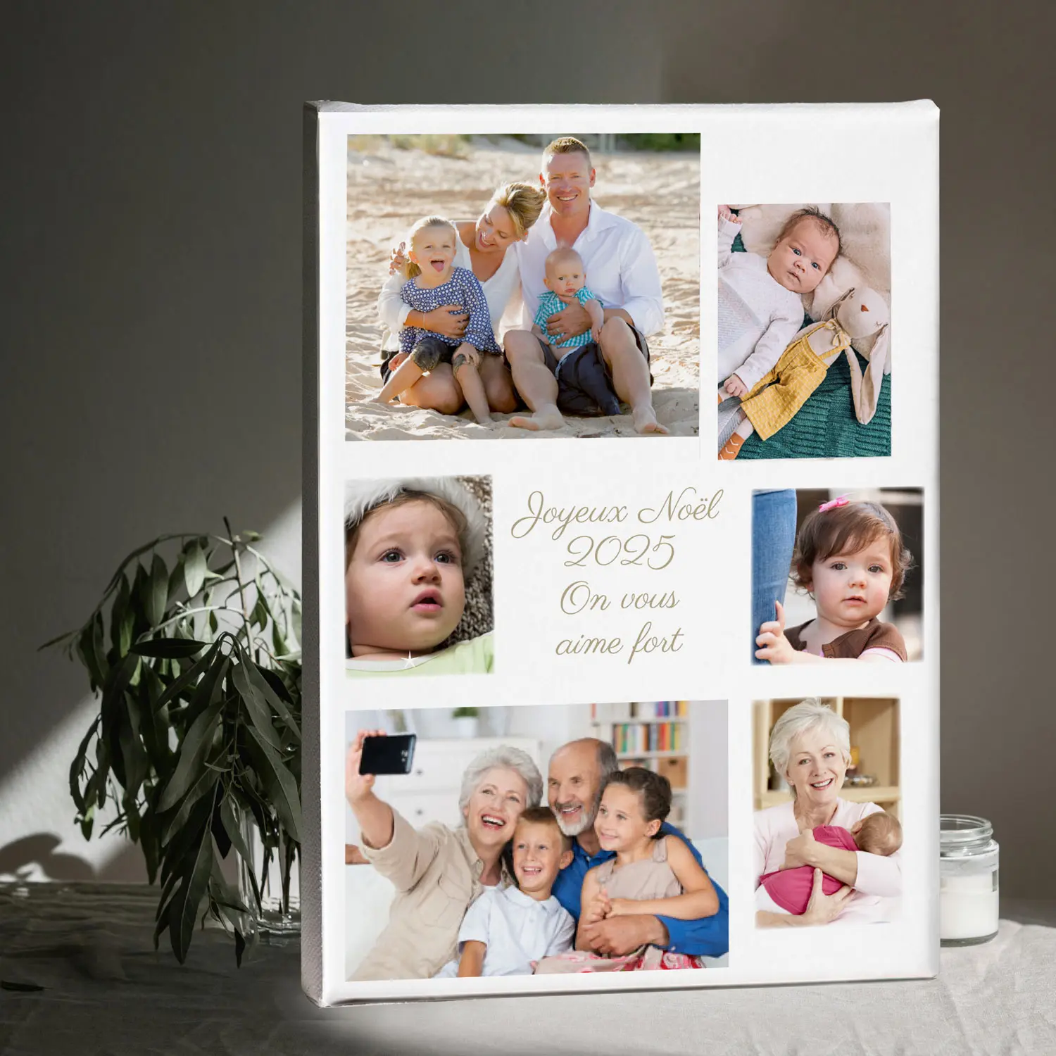 Pour Noël, un anniversaire, la fête des grands-parents ou simplement pour faire plaisir à ceux que vous aimez, cette création photo personnalisée deviendra un souvenir précieux et intemporel.