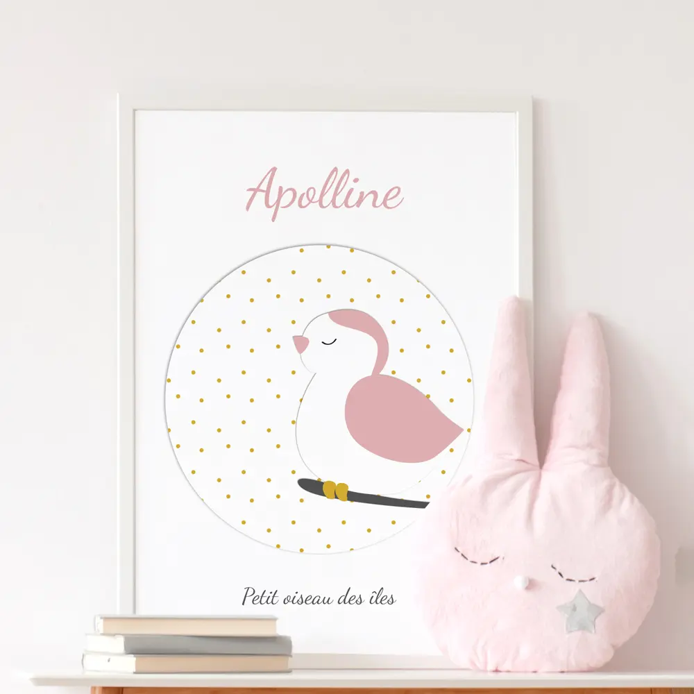 Soyez le premier à laisser votre avis sur “Affiche personnalisable du petit oiseau rose poudré et doré”