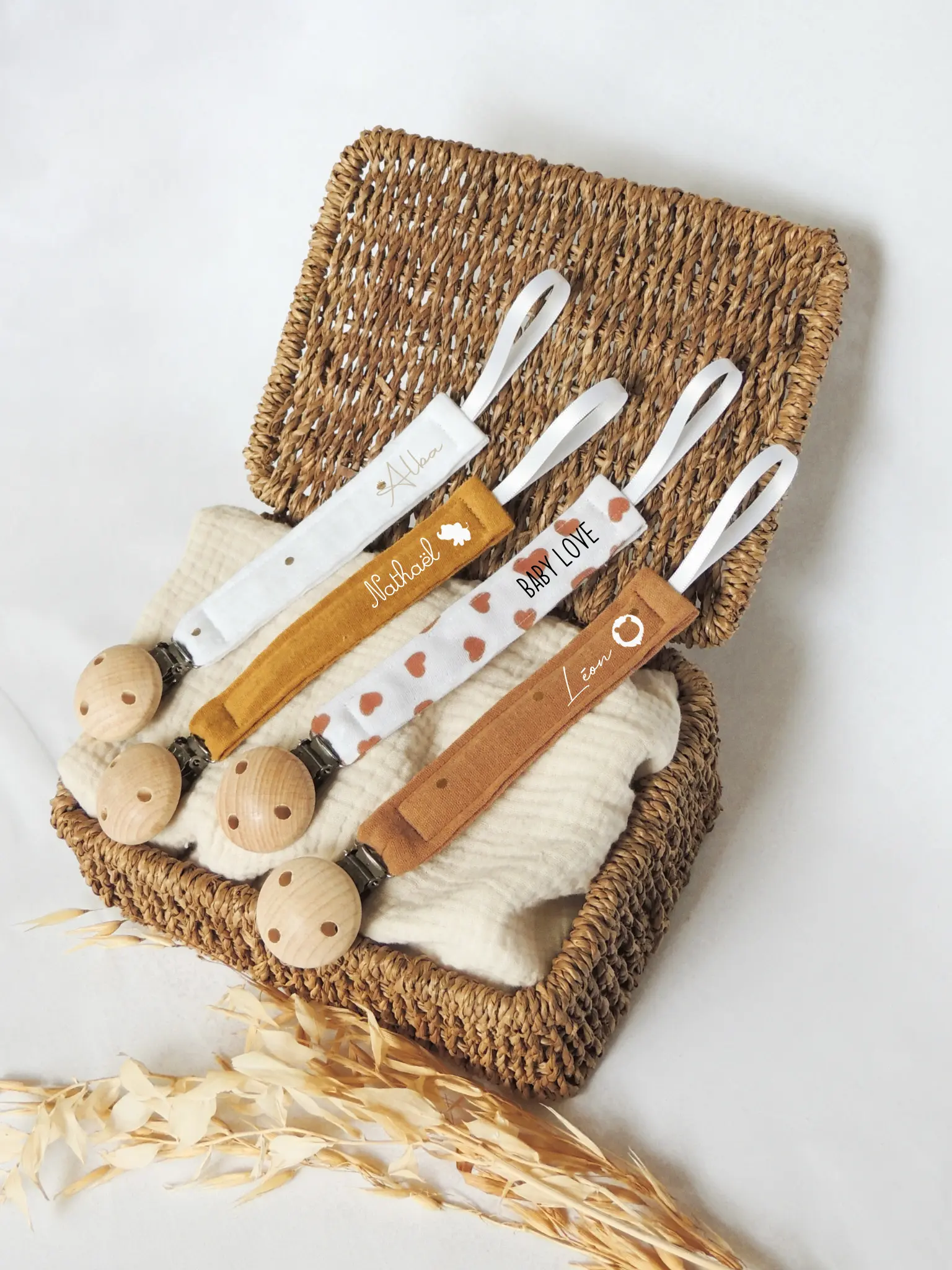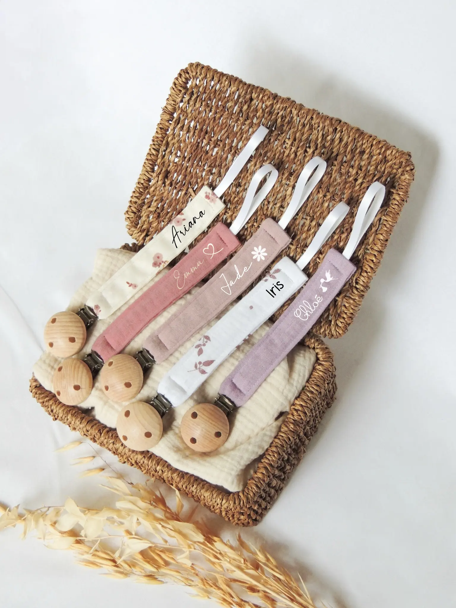 Découvrez notre attache-tétine personnalisée, alliant praticité et esthétisme. Fabriquée en tissu Oeko-Tex, elle garantit une sécurité optimale pour votre bébé. Son clip en bois, testé et approuvé, permet de fixer facilement l’attache à des vêtements ou à une poussette, évitant ainsi les pertes. La personnalisation par flocage vous permet d’ajouter le prénom de votre enfant, rendant cet accessoire unique. Conçue avec soin, cette attache-tétine est à la fois douce et durable, idéale pour les petites mains. Offrez à votre bébé une touche de style tout en assurant la fonctionnalité. C’est un cadeau parfait pour les naissances ou les anniversaires, alliant design et confort. En plus d’être pratique, elle contribue à l’identité de votre enfant tout en ajoutant une note colorée à son univers. Adoptez cette attache-tétine personnalisée pour un quotidien simplifié et stylé ! 🤎