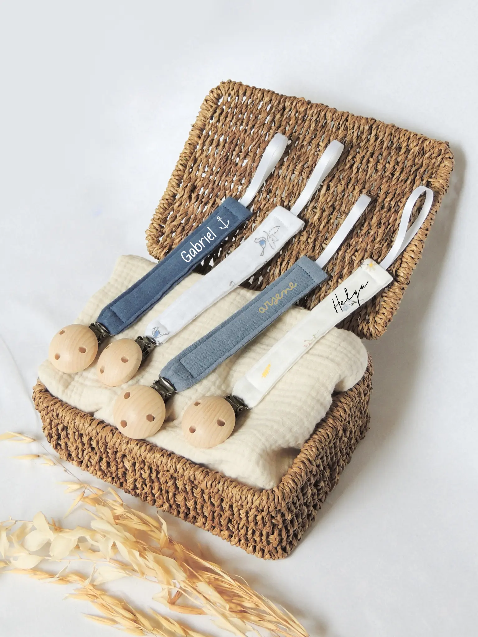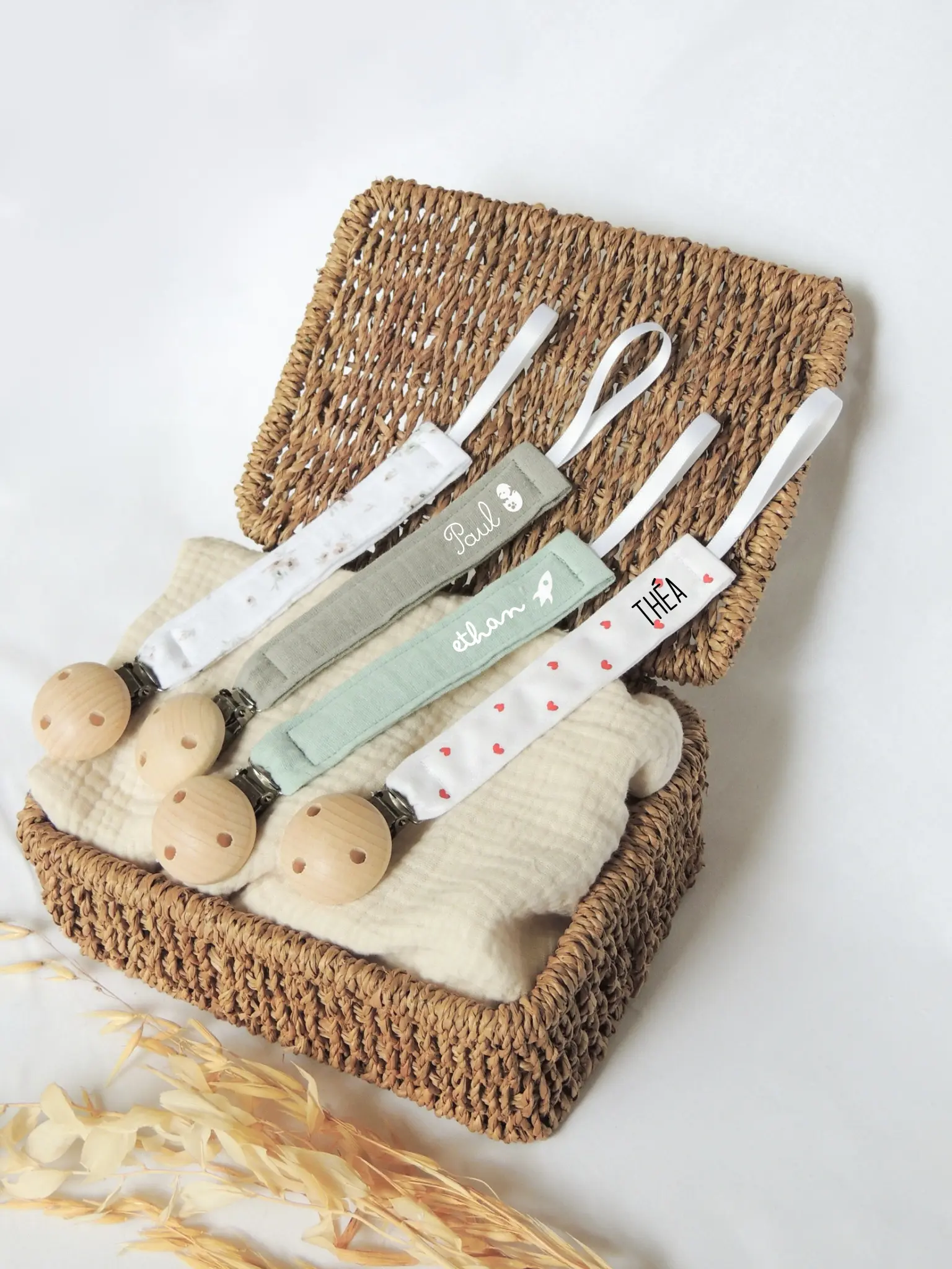 Attache tétine personnalisée en tissu OFFRE : 3 ACHETÉE = 1 OFFERTE Découvrez notre attache-tétine personnalisée, alliant praticité et esthétisme. Fabriquée en tissu Oeko-Tex, elle garantit une sécurité optimale pour votre bébé. Son clip en bois, testé et approuvé, permet de fixer facilement l’attache à des vêtements ou à une poussette, évitant ainsi les pertes. […]