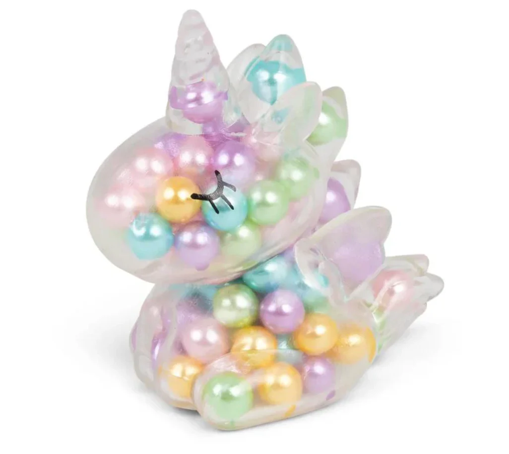 Un plaisir de presser magique : la licorne transparente est remplie de perles colorées qui créent un son fascinant et une sensation tactile lorsqu’on la presse.