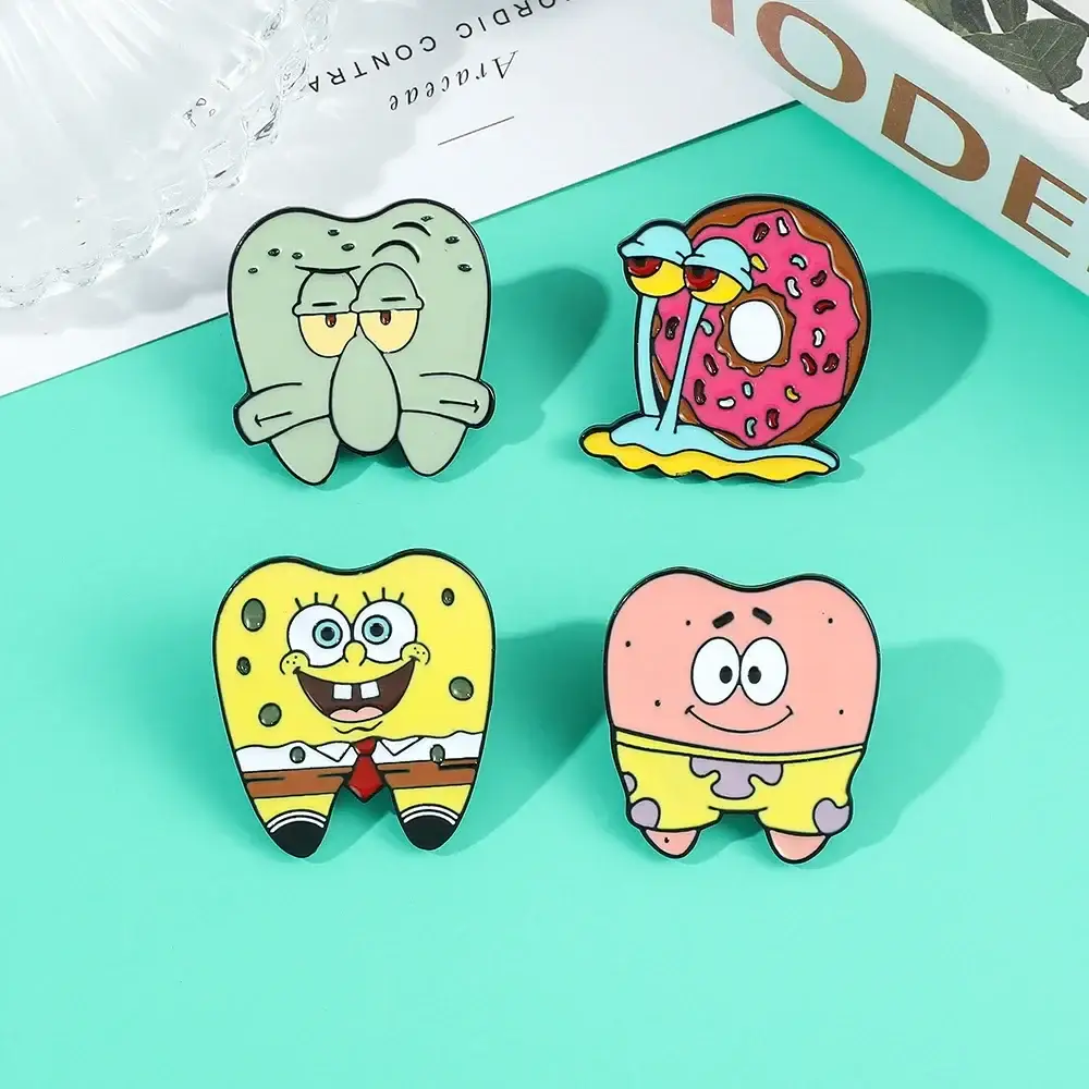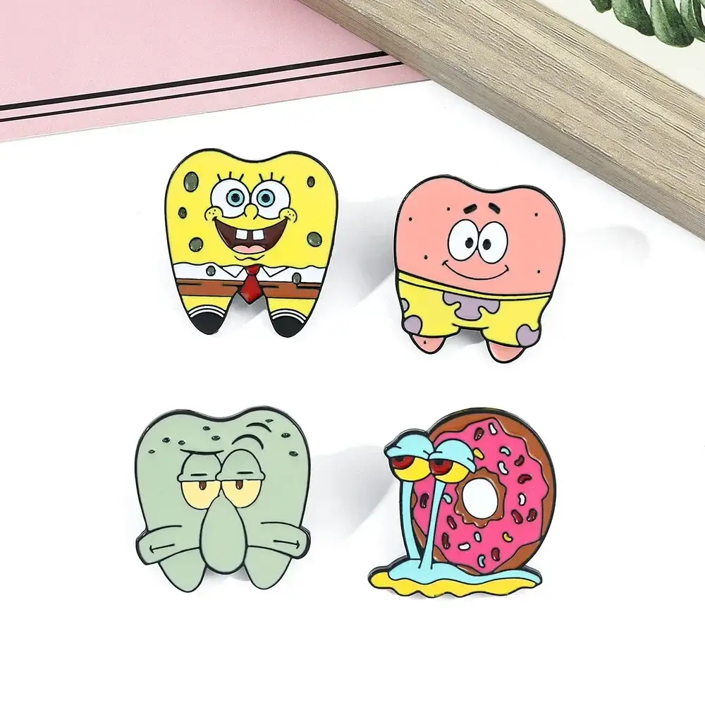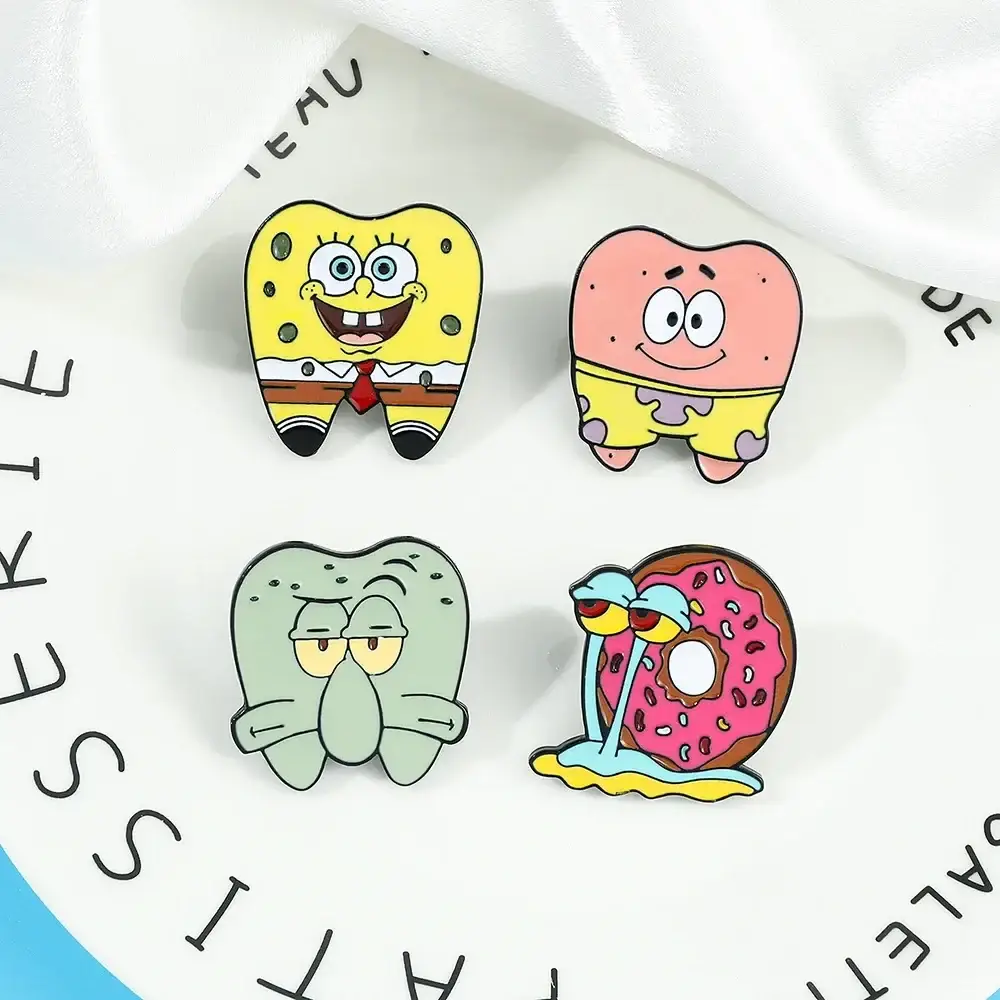 - Design emblématique : Des pin’s à l’effigie de Bob l’éponge et ses amis.