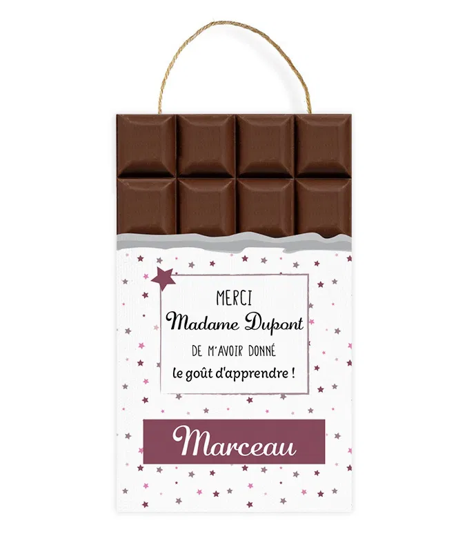 Un cadeau pour la maîtresse personnalisé et pas cher, en forme de plaquette de chocolat