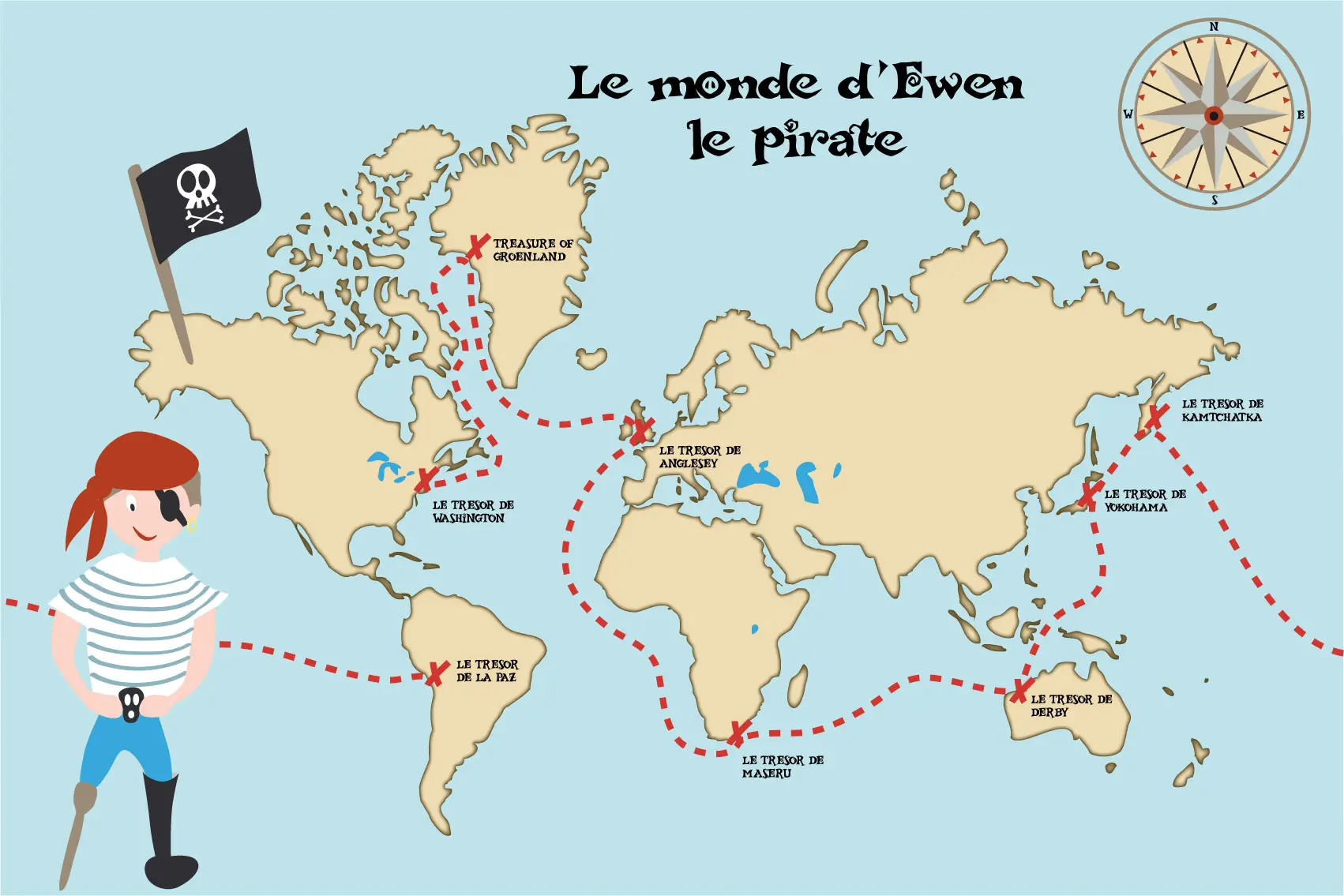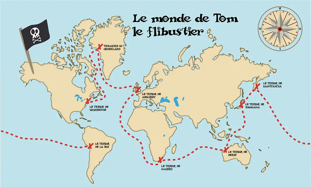 Une carte originale qui décorera la chambre de votre enfant tout en le faisant voyager à travers le monde, à la recherche de trésors cachés