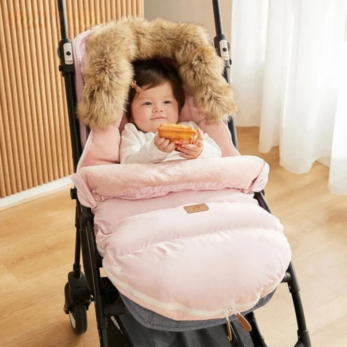 Facile à enfiler, cette chancelière bébé s’adapte à toutes les poussettes, nacelles ou coques.