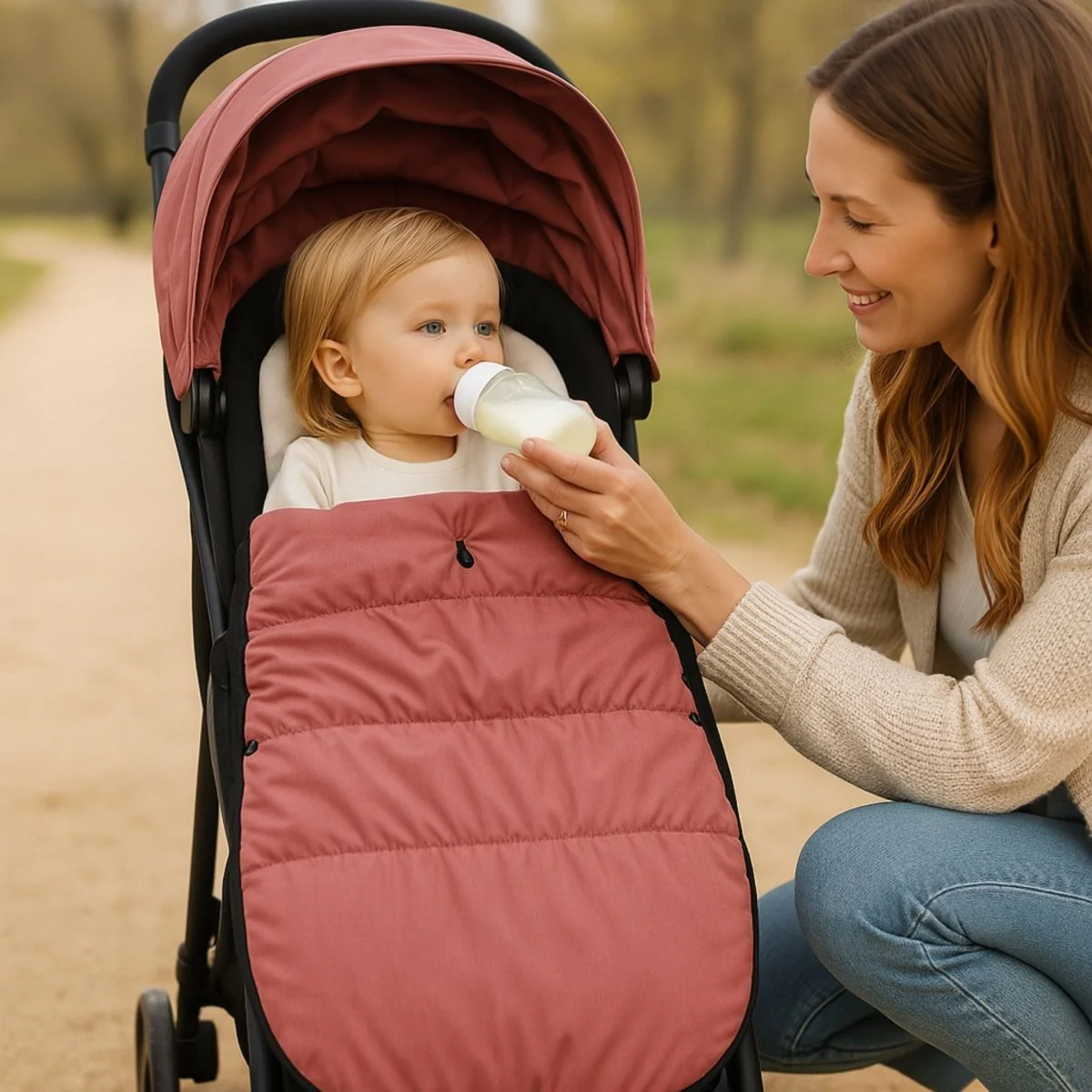 La doublure moelleuse assure un confort constant, et le maintien est assuré sans comprimer. Une chancelière poussette faite pour les sorties par temps froid.