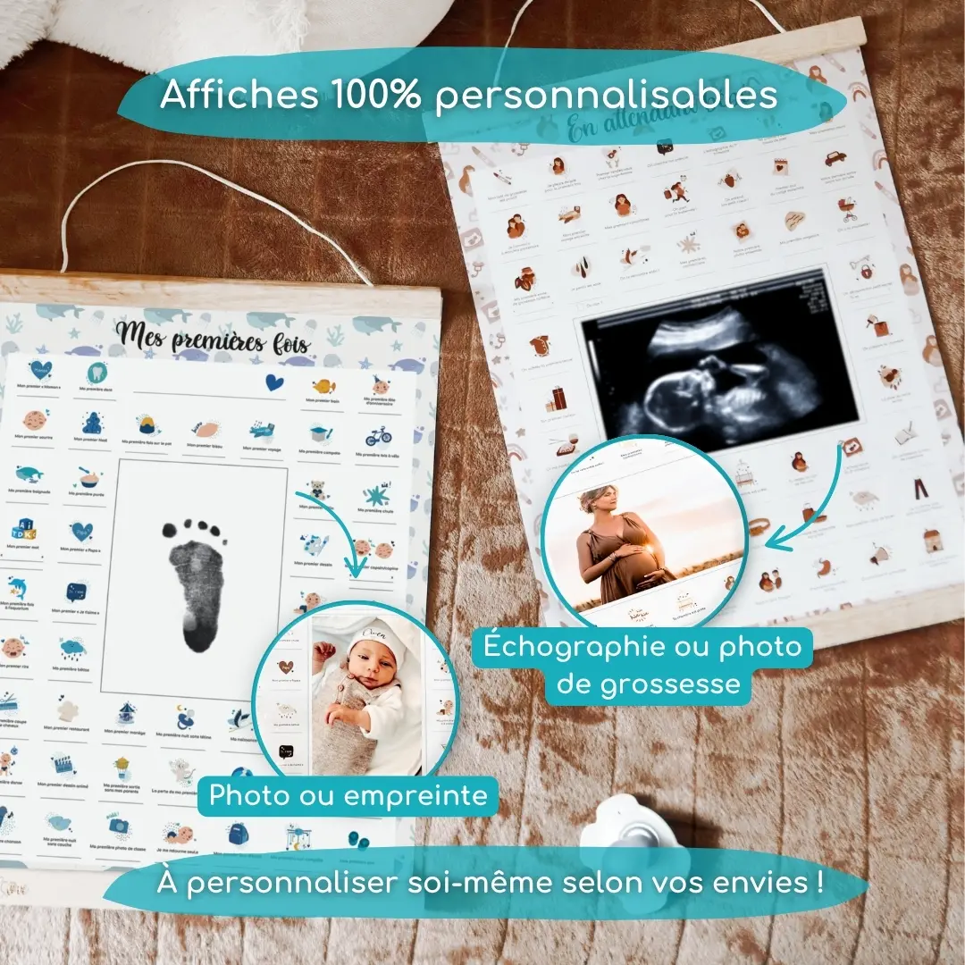 Glissez une échographie, une photo ou une empreinte au centre de chaque affiche.