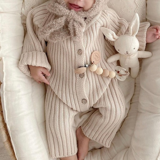 Épurée, douce et intemporelle, la combinaison Ange enveloppe les tout-petits dans une maille côtelée souple et confortable. Son design minimaliste, sublimé par une patte de boutonnage en bois, offre une allure à la fois raffinée et facile à vivre au quotidien. Une pièce unisexe, idéale dès les premiers jours.