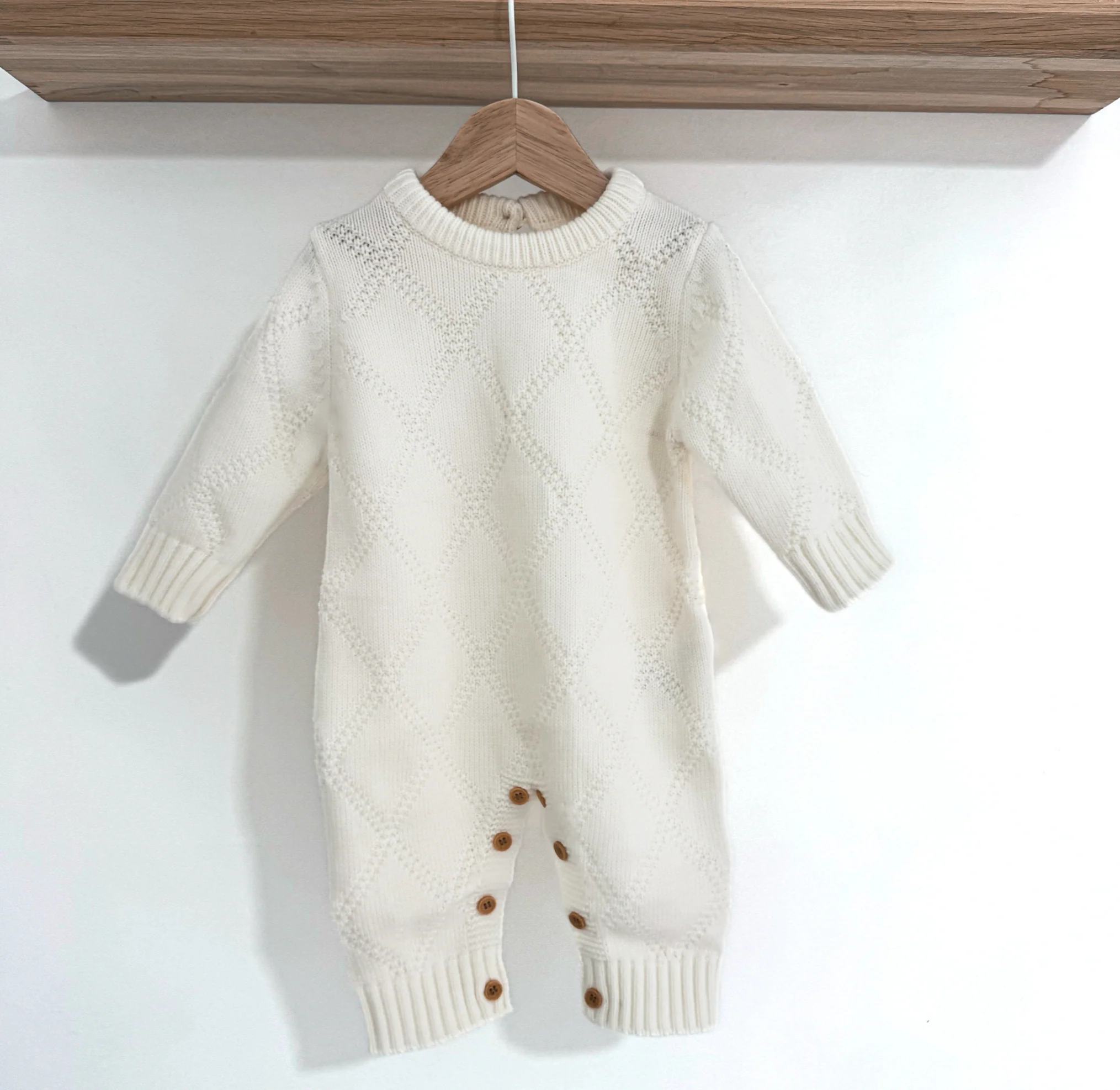 Offrez à votre bébé un confort enveloppant avec cette adorable combinaison en maille tricotée. Parfaite pour les journées fraîches, elle combine douceur, chaleur et un design classique.