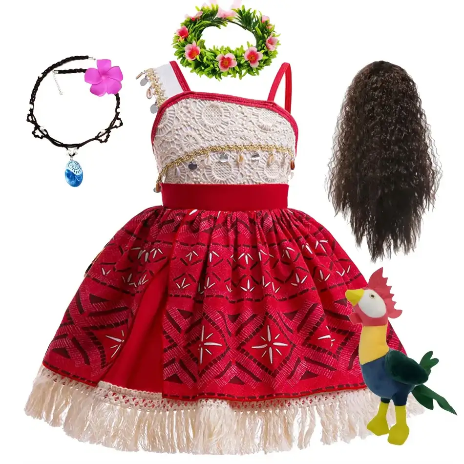 - Ensemble complet et immersif : La robe et les 4 accessoires inclus (perruque, collier, peluche Heihei, couronne) garantissent une immersion totale dans l’univers de Vaiana, offrant une expérience de jeu ou de déguisement inégalée.