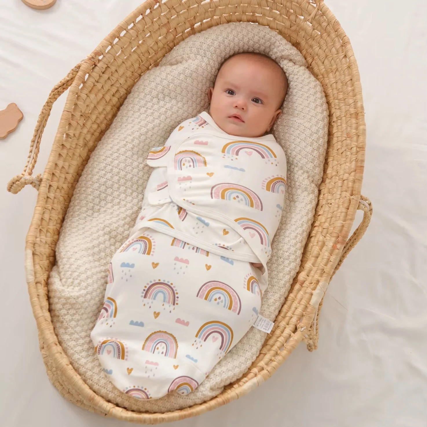 Notre couverture emmaillotage est conçue pour maintenir votre bébé en toute sécurité sans exercer de pression sur ses hanches. La poche pour les jambes et les deux ailes qui entourent les bras permettent de réduire les réflexes accidentels, aidant ainsi votre bébé à se sentir rassuré et à dormir plus longtemps.