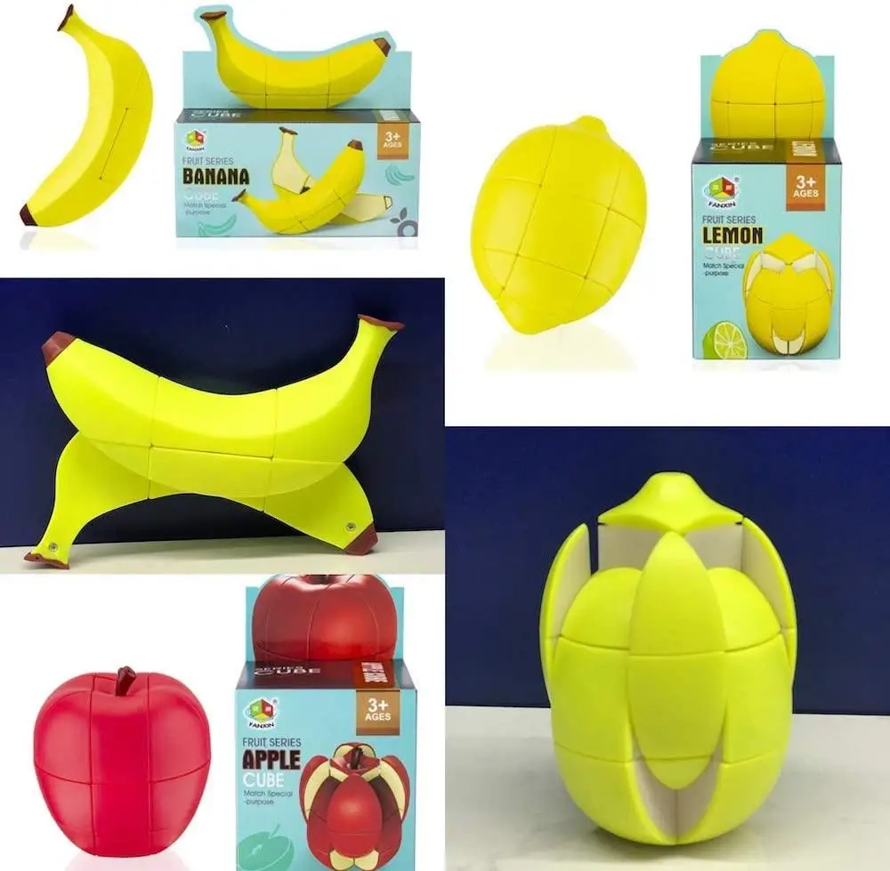 - Une Pomme 3x3x3 , un citron 3x3x3 et une banane 3x2x2.