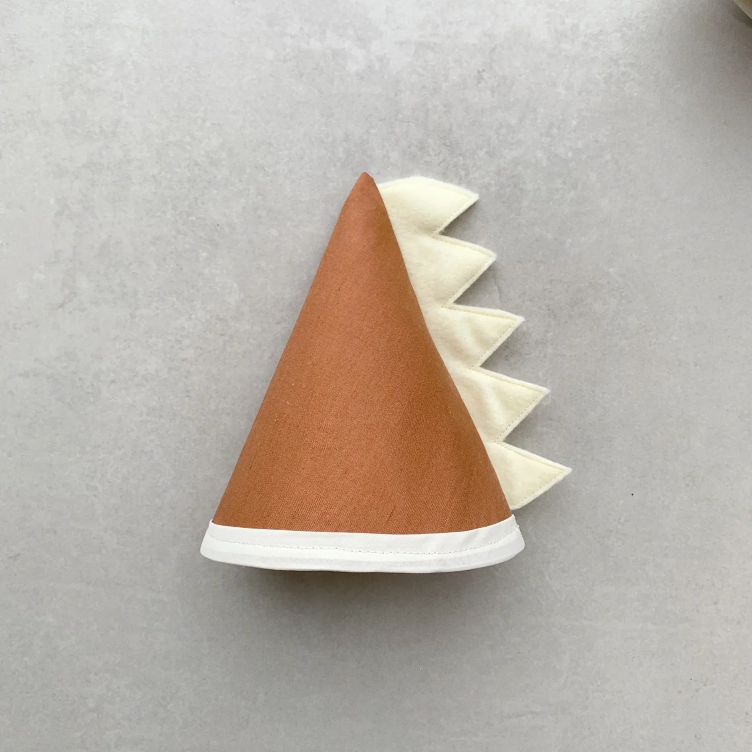 Adorable reusable dinosaur hat to add joy to your parties! Pointed fabric hat with a felt crest to make your little ones and older ones smile and laugh. Unisex and timeless accessory ideal for enhancing your most beautiful family moments.