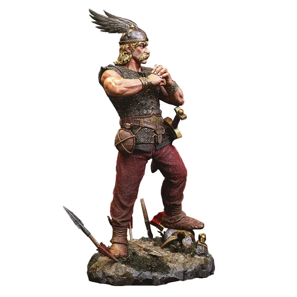- Détails authentiques : Une sculpture fidèle aux représentations historiques des guerriers Gaulois, capturant l’essence de ces figures antiques.