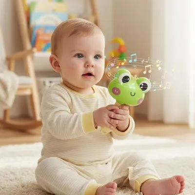 Saviez-vous que les stimuli musicaux favorisent le développement cognitif des bébés? Notre hochet musical ne se contente pas de produire des sons aléatoires. Il génère de douces mélodies adaptées aux oreilles sensibles des tout-petits, accompagnées d’effets lumineux subtils qui captivent leur regard. Cette combinaison son-lumière crée des moments magiques d’éveil et de découverte.