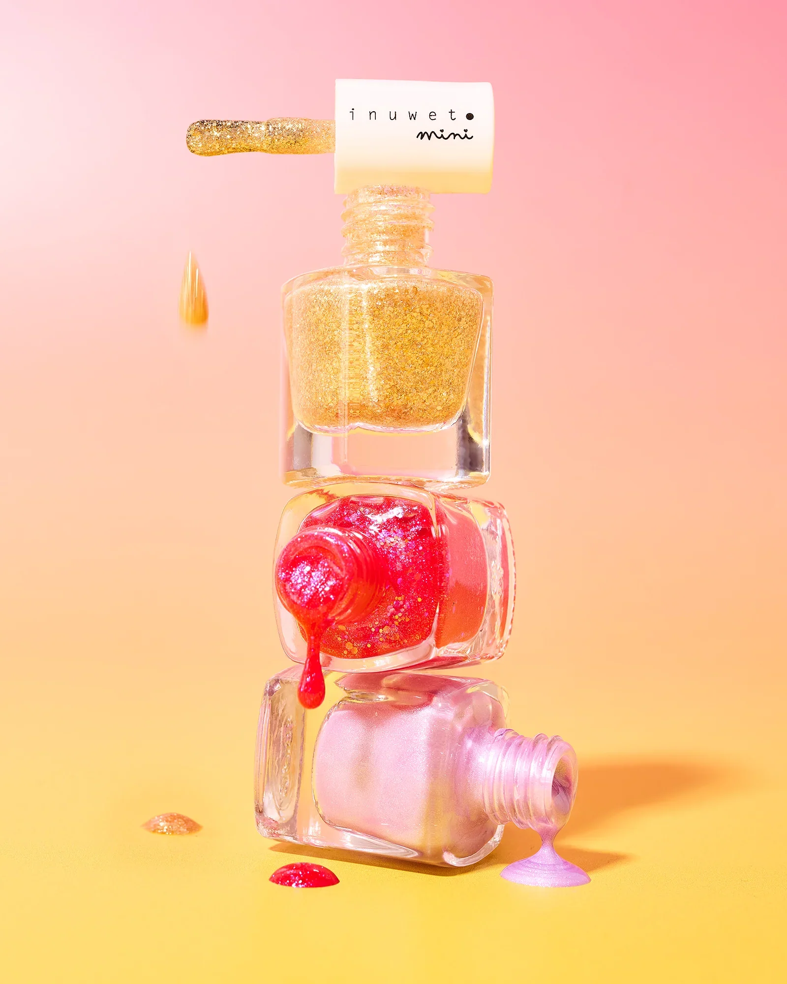 Our nail polishes are made in France, vegan, cruelty-free, composed of 82% water and up to 97% ingredients of natural origin and wash off with water. At inuwet mini everything is suitable, mini bottle, mini brush it’s easy for little ones!