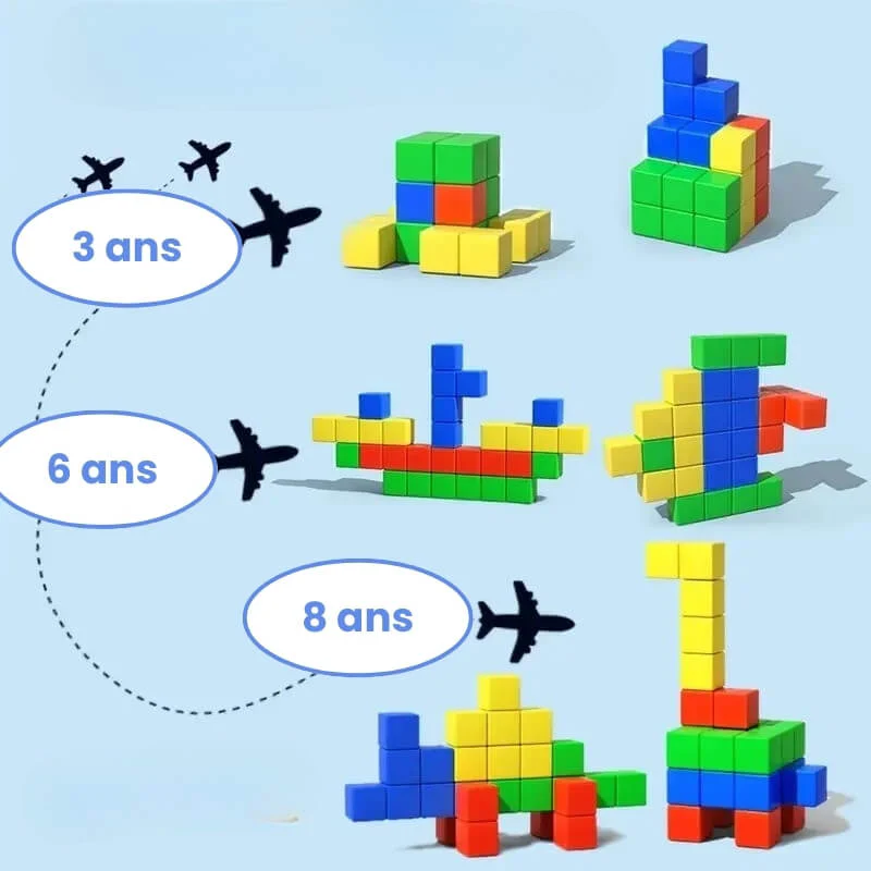 Avant Cubi Magnet, les parents devaient acheter différents jeux pour chaque âge. Aujourd’hui, un seul investissement accompagne votre enfant à travers les années cruciales de son développement cognitif. La satisfaction vient aussi de voir l’évolution des constructions au fil du temps, comme un album photo en trois dimensions de la croissance intellectuelle de votre enfant.