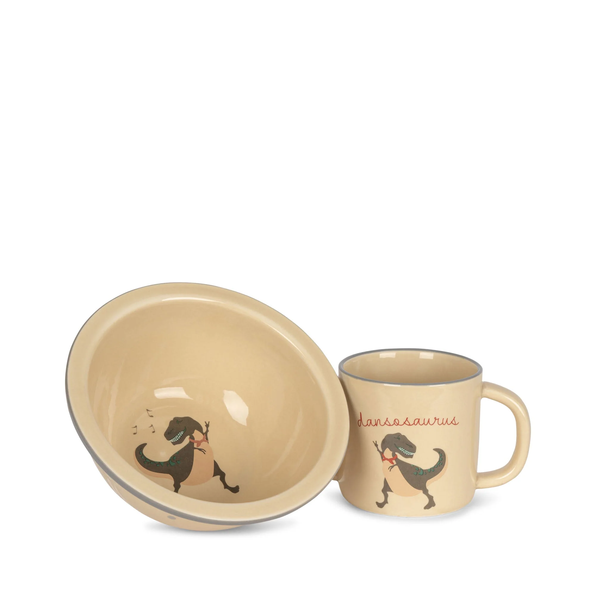Konges Slojd – Bol et Tasse en Céramique – Dansosaurus||Konges Slojd – Ceramic Bowl and Cup – Dansosaurus