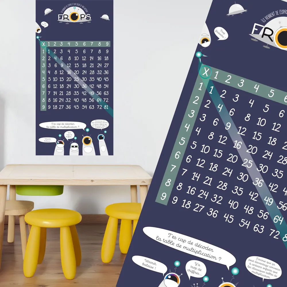 Apprendre ses tables de multiplication est une étape essentielle dans le parcours scolaire de l’enfant. Avec l’affiche FROPS – Table de multiplication, fini l’apprentissage uniquement mécanique et répétitif. Ici, l’enfant comprend la logique des multiplications grâce à une représentation visuelle claire et ludique.