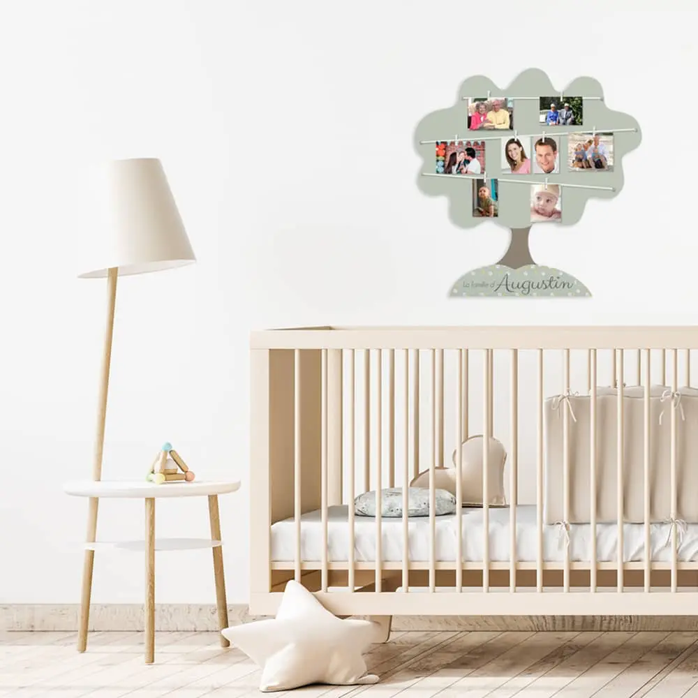 Plus tard, c’est votre enfant qui pour choisir de suspendre de nouvelles photos de famille, voire d’y rajouter des photos de ceux qui comptent pour lui comme un parrain ou une marraine, son meilleur ami à l’école, sa nounou, son doudou ou encore son chat ou son chien.
