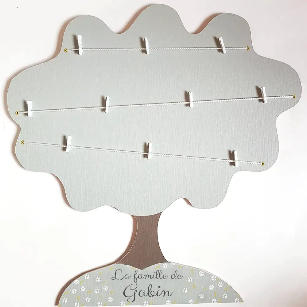 Un moyen original de faire découvrir sa famille à votre bébé Avec des tonalités douces et naturelles en dominante vert sauge, cet arbre généalogique original a été découpé à la scie à chantourner pour lui donner une forme d’arbre. Grâce à 10 mini-pinces fournies, vous pourrez suspendre les photos de la famille de votre enfant […]