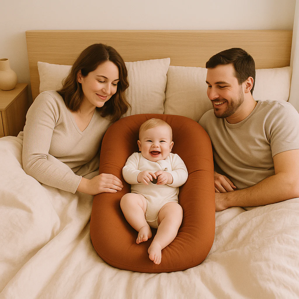 Marie, jeune maman de Léo (2 mois) témoigne : « Depuis que nous utilisons ce nid douillet, Léo fait enfin ses nuits! Il semble tellement apaisé dans ce petit cocon que nous l’emportons partout avec nous. »