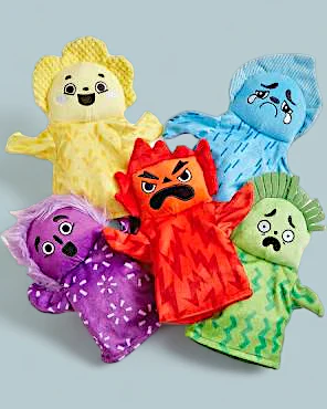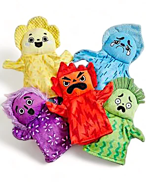 Palette Emotionnelle Complète : Chaque marionnette est attribuée une couleur symbolisant une émotion spécifique, rendant l’apprentissage intuitif et engageant (jaune pour la joie, bleu pour la tristesse, etc.).