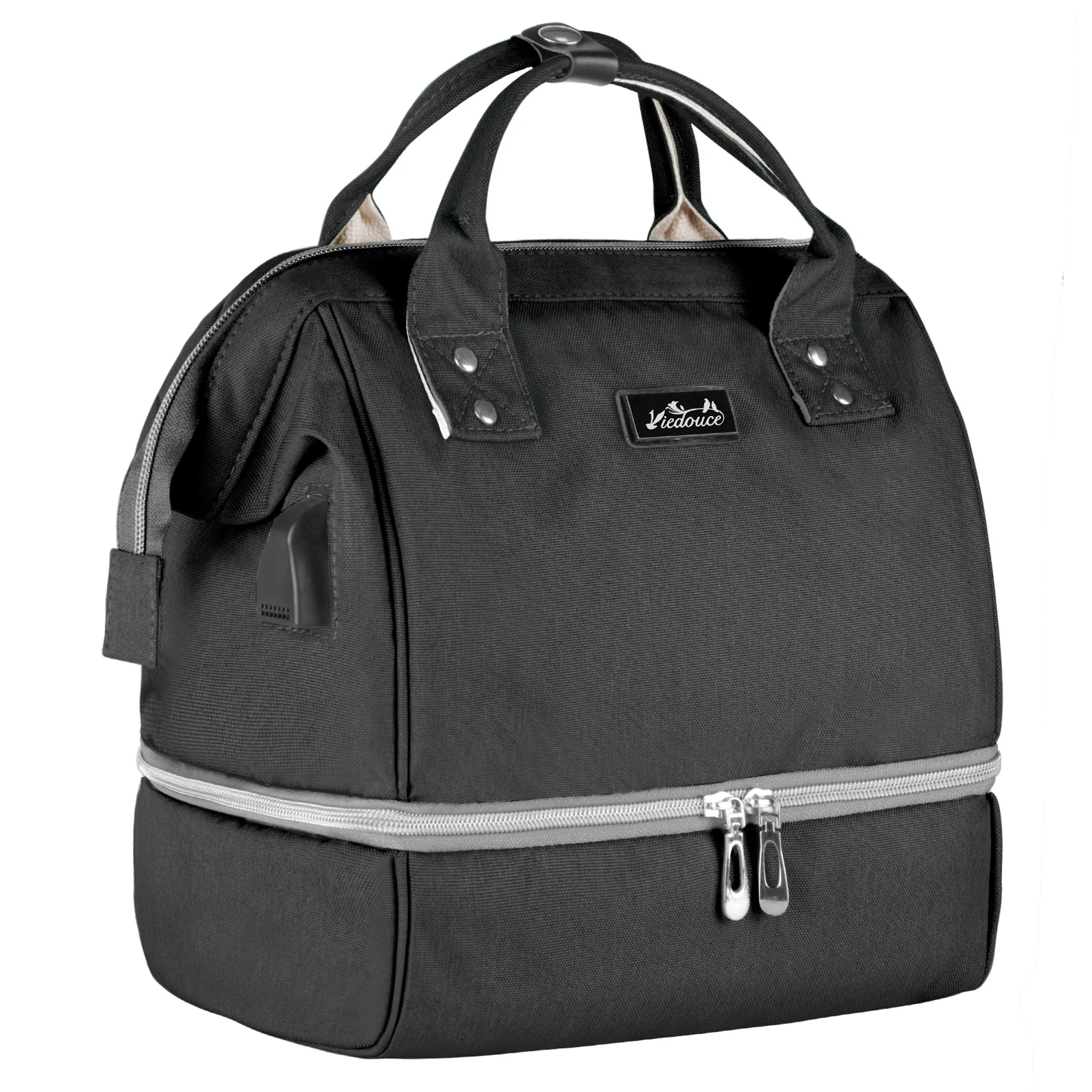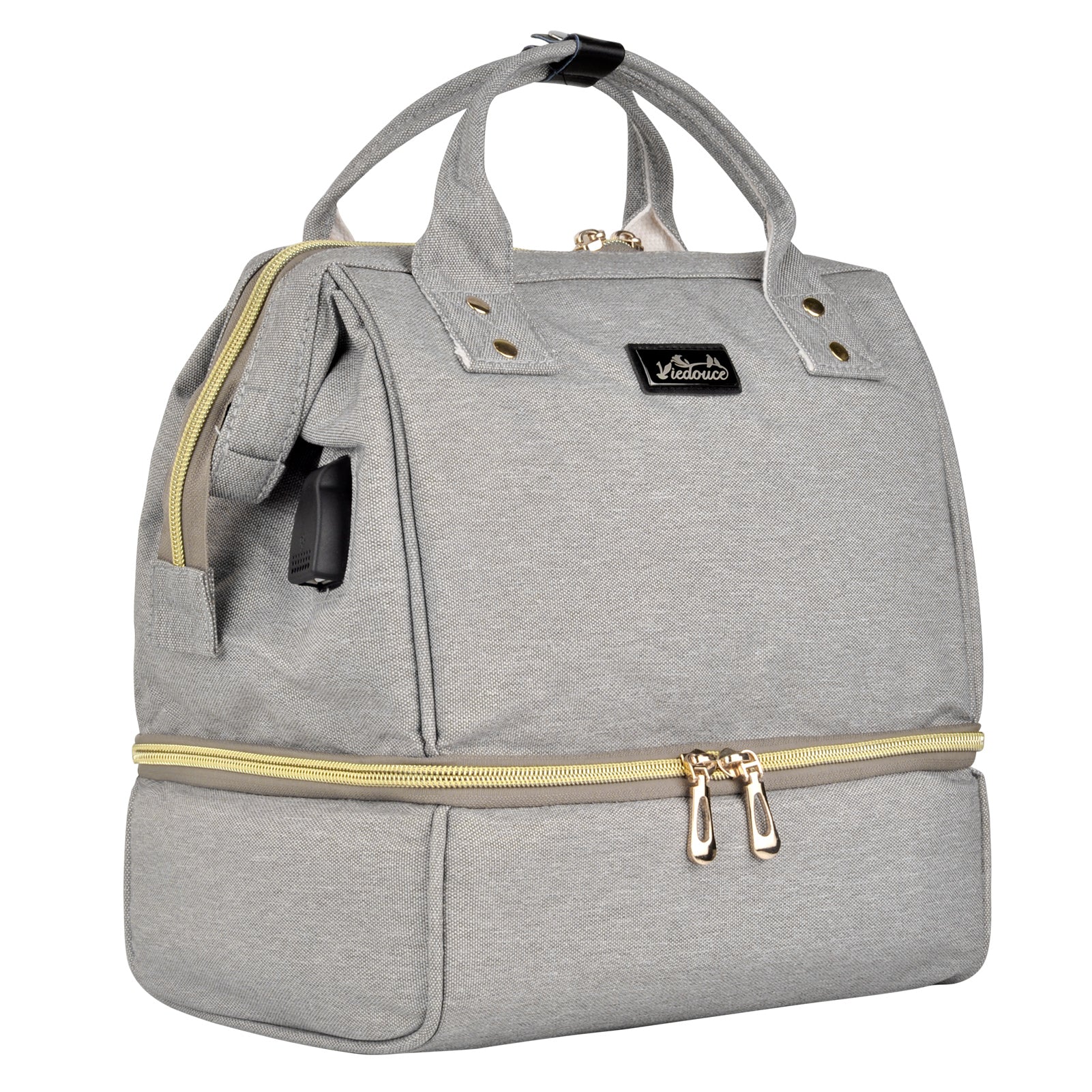 - Multi-poche – La grande poche principale avec une grande ouverture contient 5 autres poches pour ranger les vêtements, les biberons, les couches, les serviettes en papier, etc. Dotée d’un port de chargement USB, la poche extérieure permet de ranger le téléphone et les clés. La nourriture peut être conservée dans la poche inférieure.