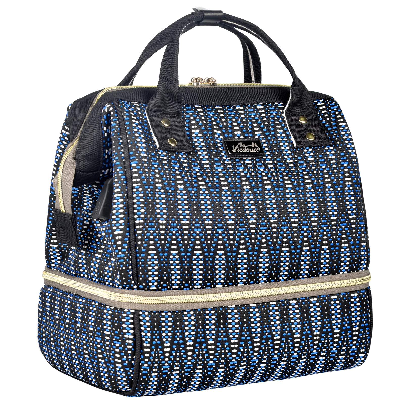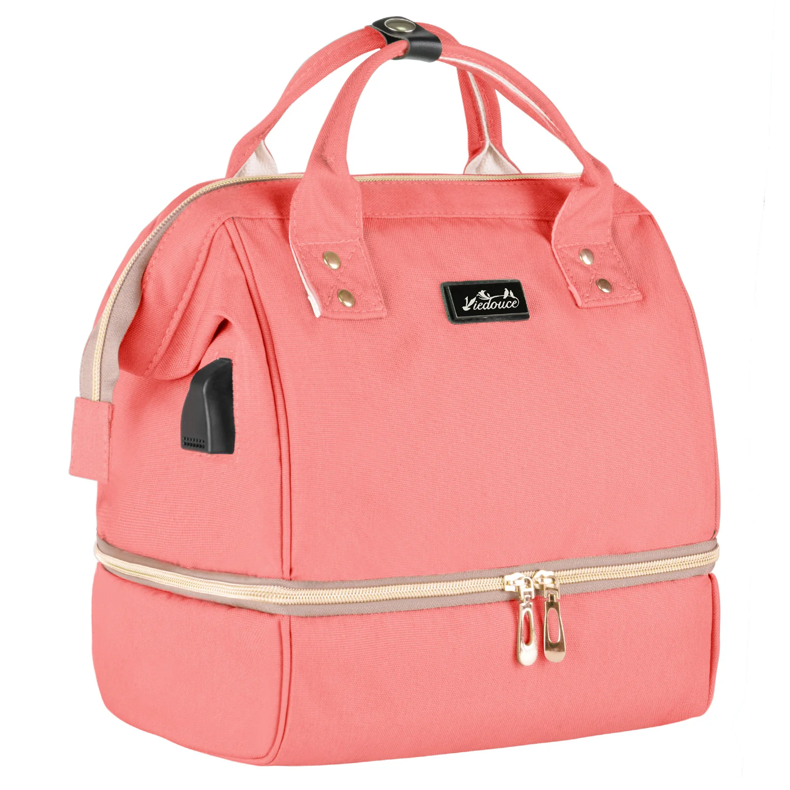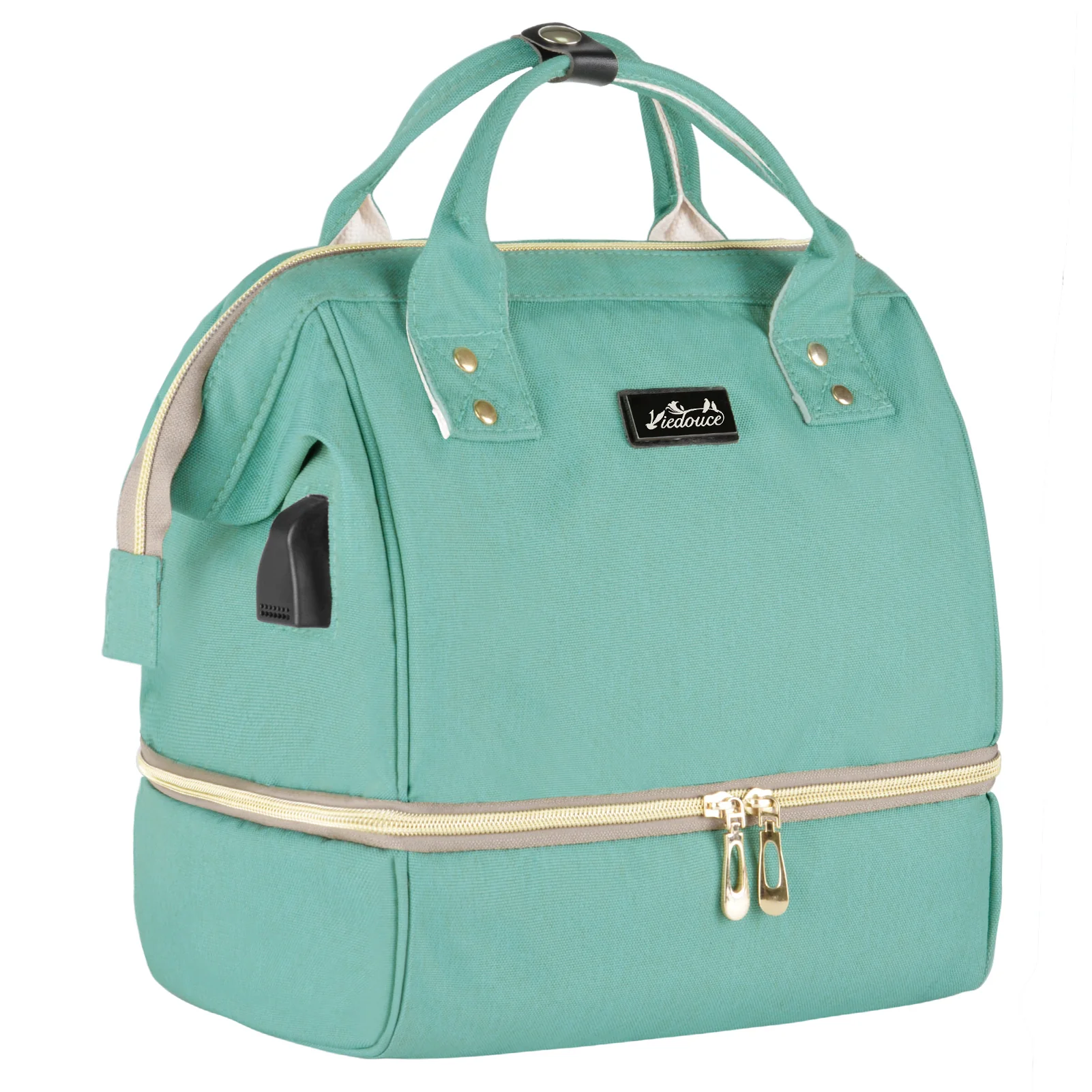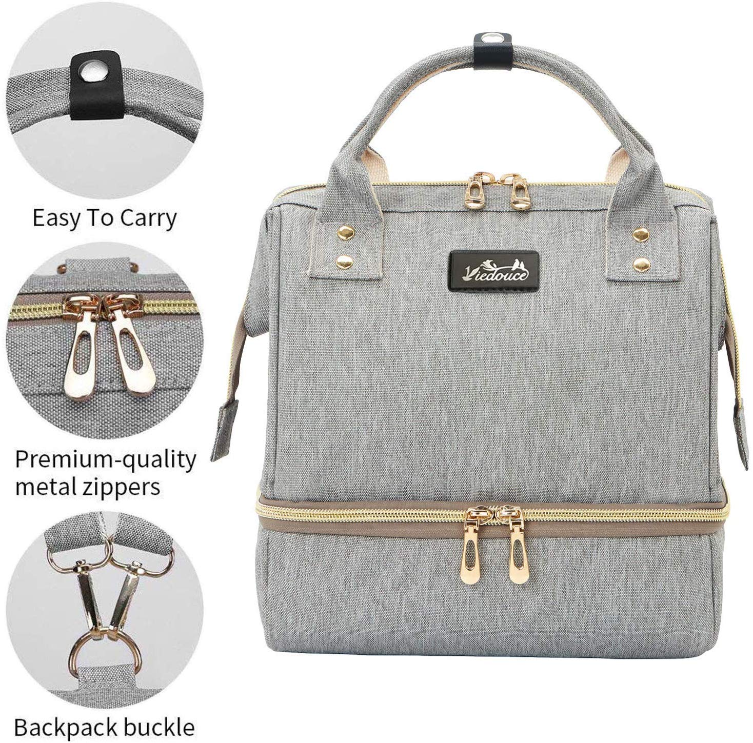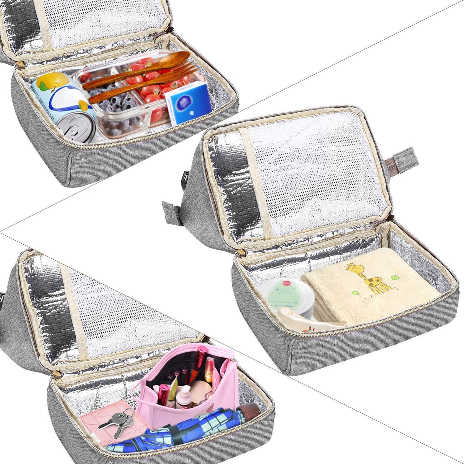 - Conception à double couche – la couche supérieure est un sac à couches et la couche inférieure est un sac à lunch. Les parents peuvent stocker les essentiels du bébé dans des sacs et les séparer des aliments. Léger et portable, il est adapté pour les voyages, les pique-niques et le camping.