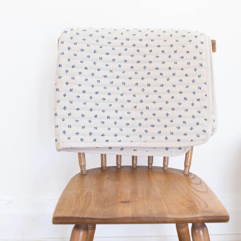 Cette couverture est fabriquée à partir de coton 100 % biologique et de rembourrage en polyester recyclé. Taille : 68 » x 88″ Couverture réversible. Un côté est blanc avec des fleurs bleues et l’autre côté est bleu avec des fleurs blanches. Laver au cycle délicat – sécher par culbutage à basse température. || This blanket […]