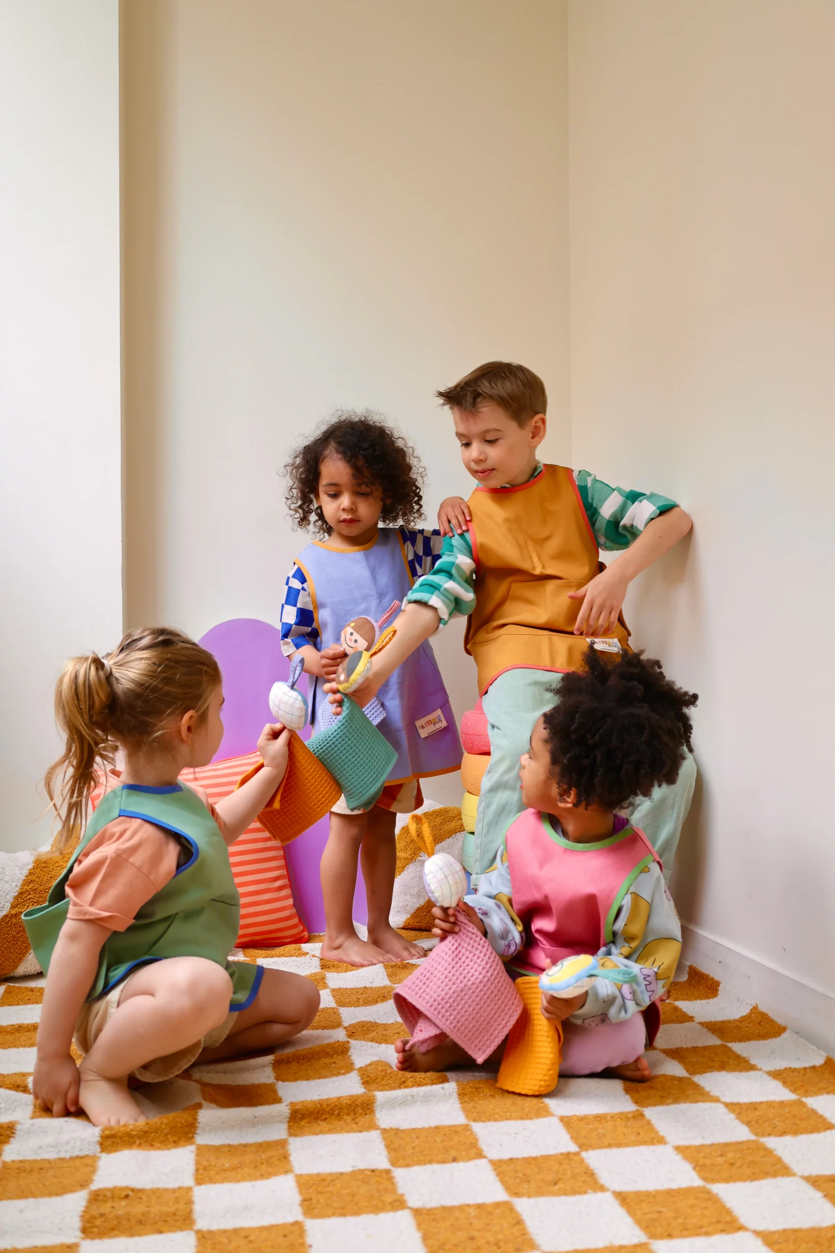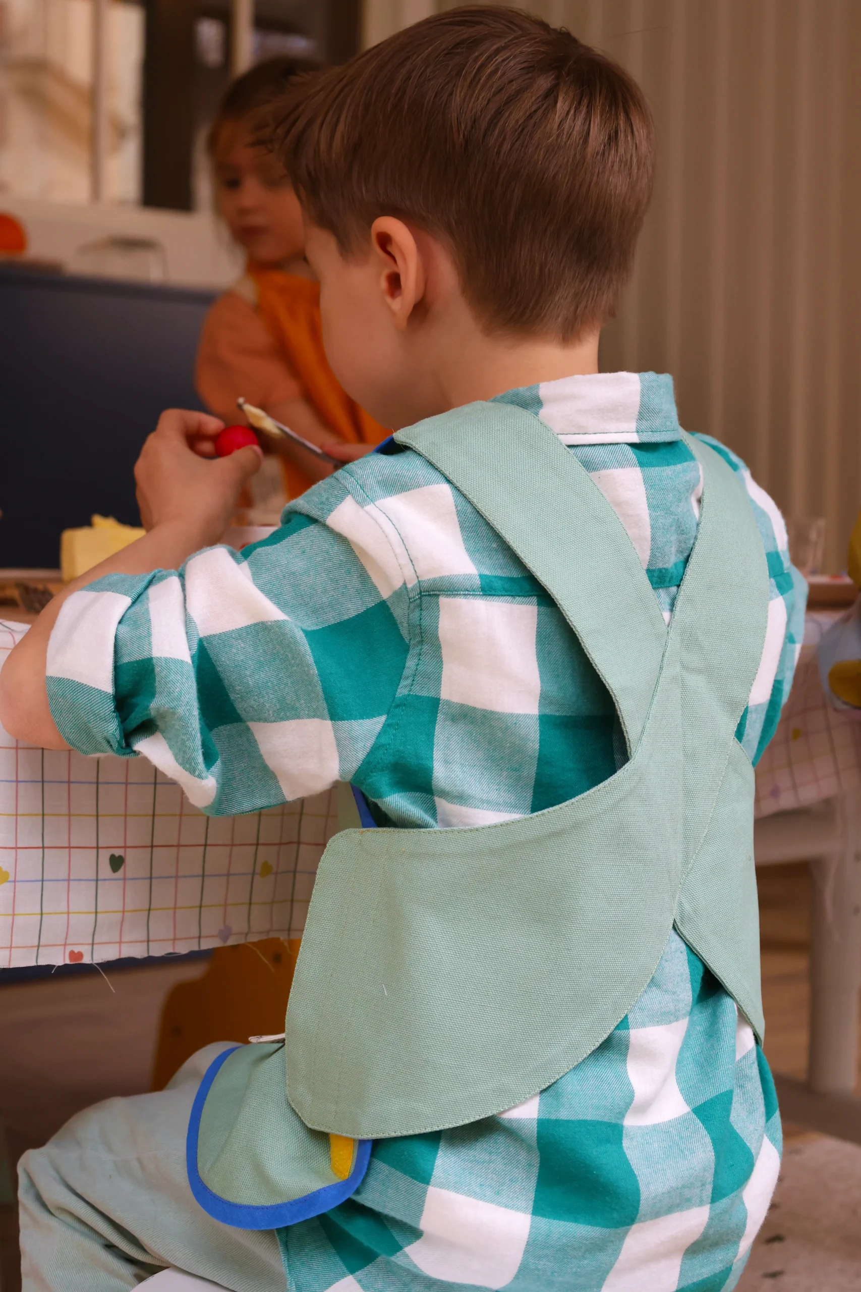 Description : – Coupe innovante équipée de scratches latéraux de couleur contrastante, facilitant la visibilité pour l’enfant qui peut ainsi mettre et enlever le tablier en toute autonomie. – Deux grandes poches latérales : pour ranger tous leurs trésors et outils. -Poche kangourou : parfaite pour loger Popetti, notre torchon rigolo (assorti !) ou d’autres […]