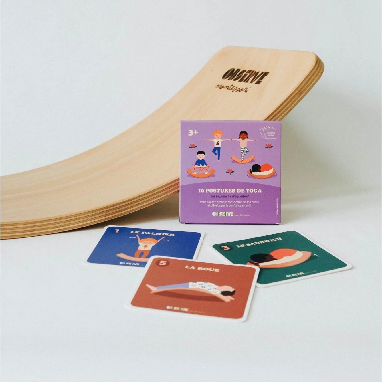 - Contenu de la boîte : 1 planche d’équilibre, 10 cartes de yoga illustrées