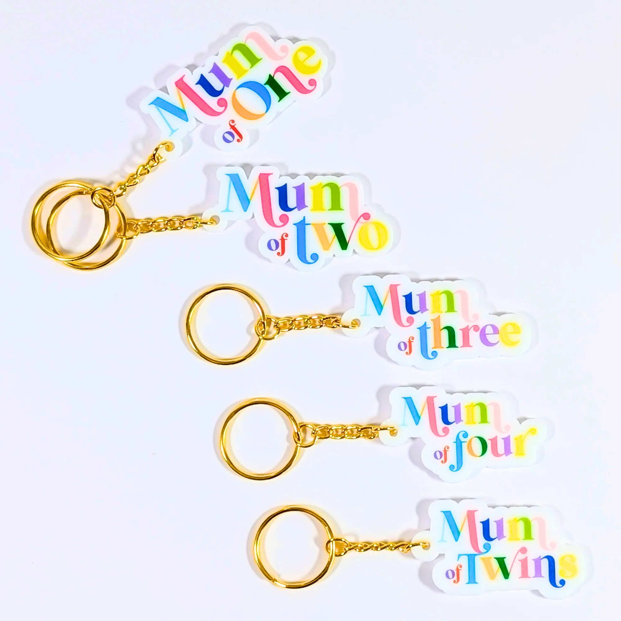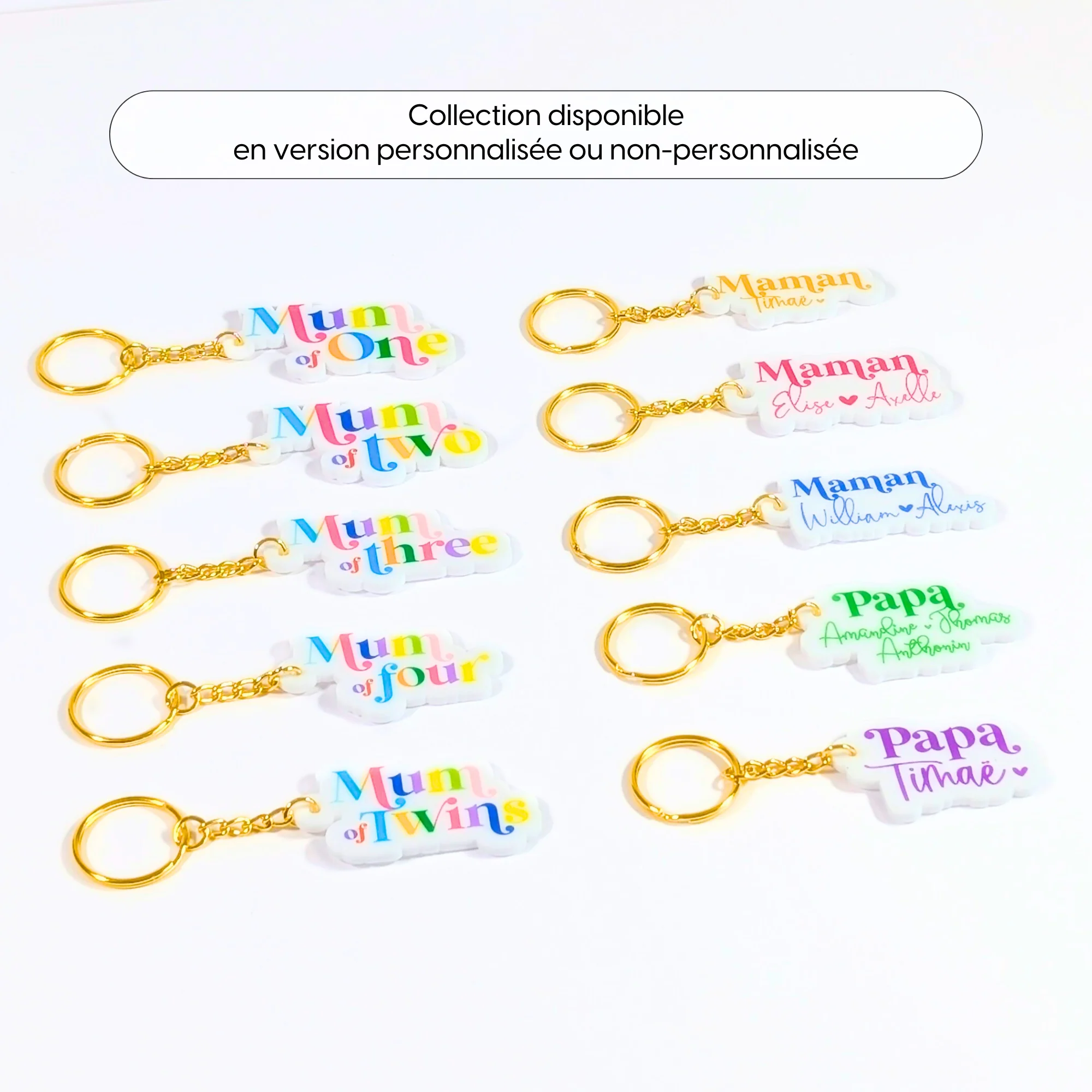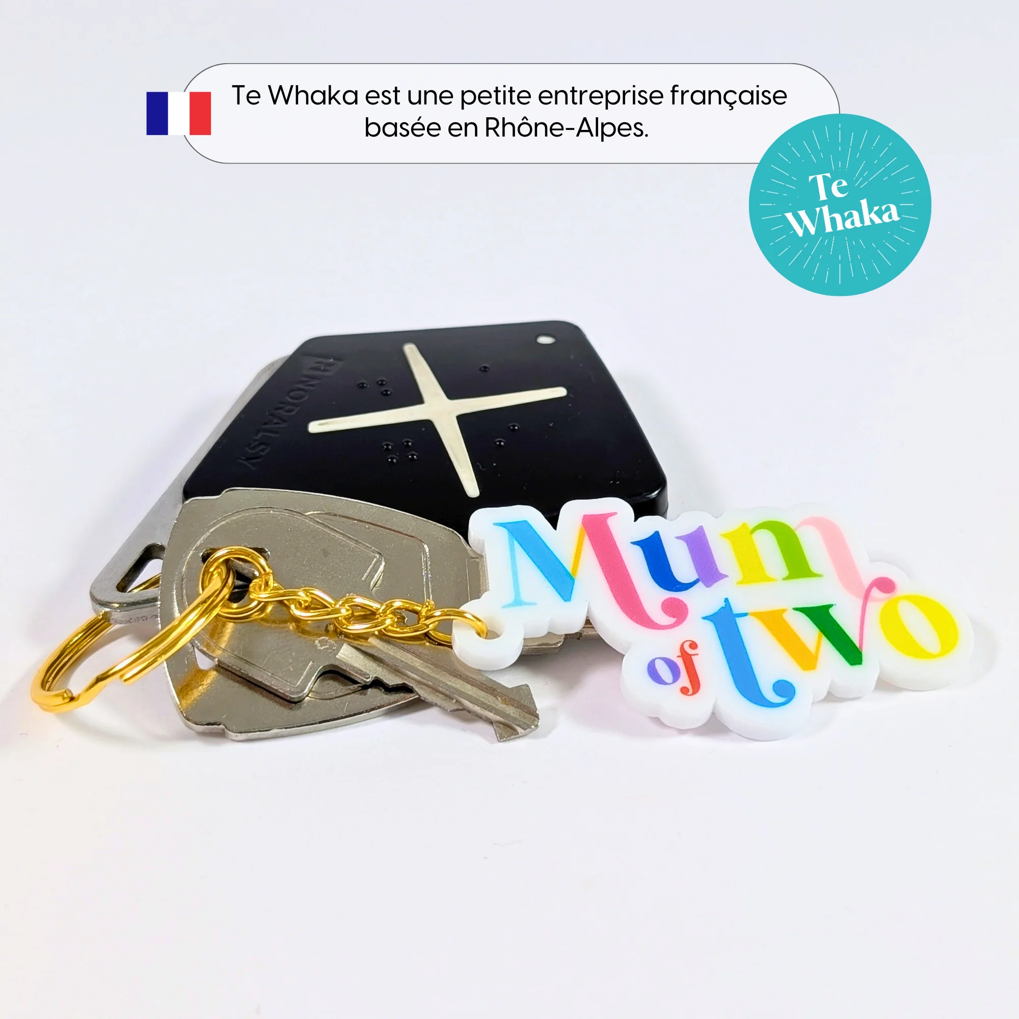 PORTE-CLÉS MAMAN : Craquez sur notre collection tout en couleurs avec nos 5 déclinaisons de portes-clés Mum of one, Mum of two, Mum of three, Mum of four, Mum of twins.