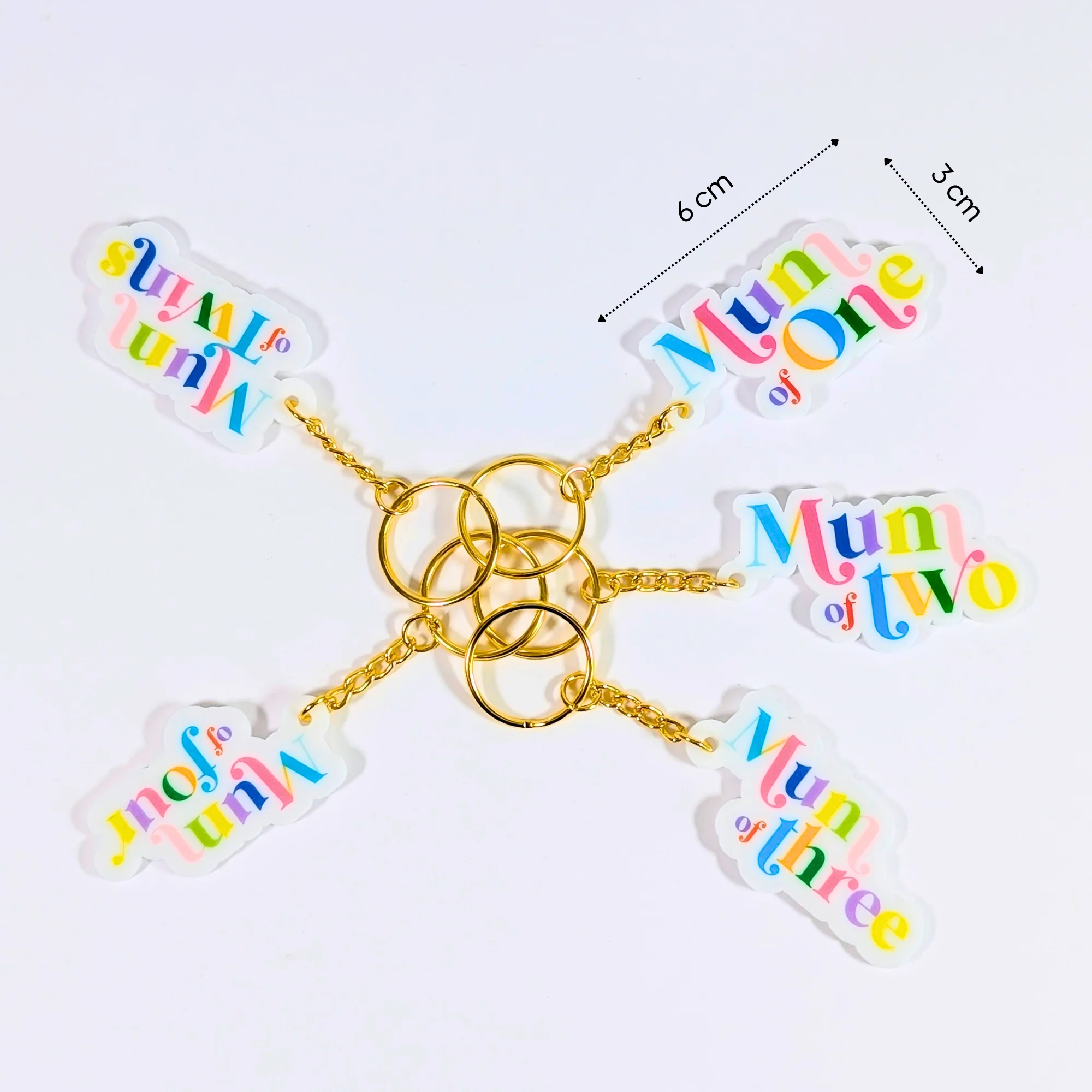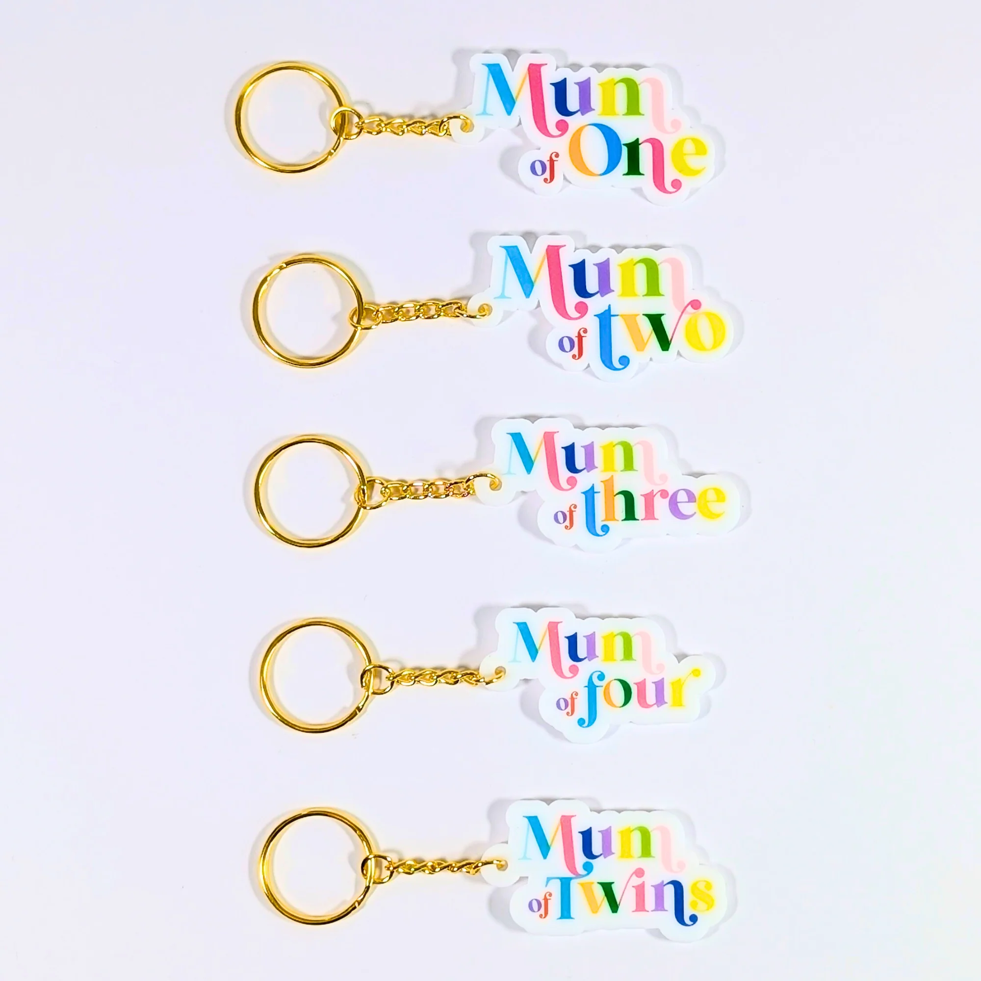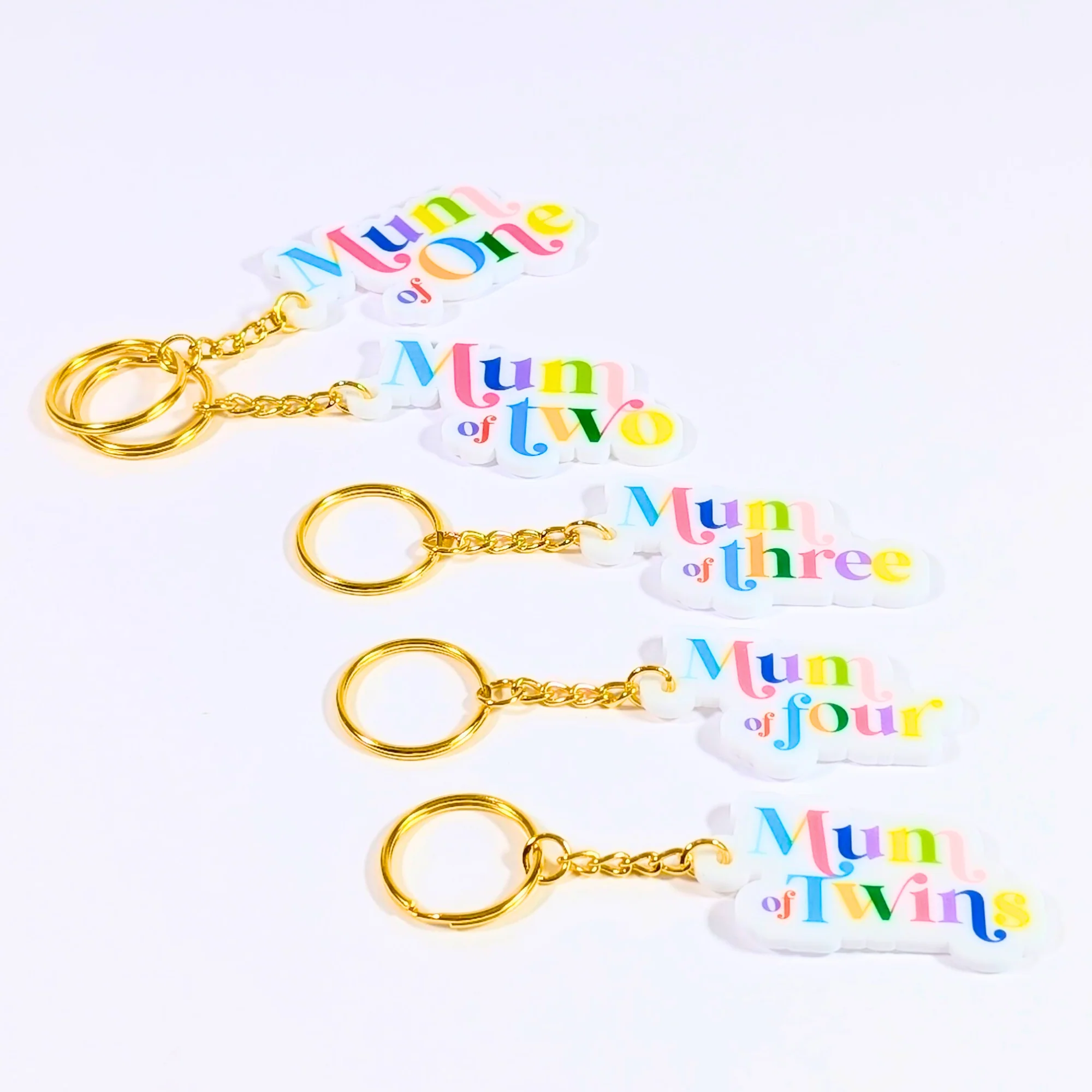 PORTE-CLÉS MAMAN : Craquez sur notre collection tout en couleurs avec nos 5 déclinaisons de portes-clés Mum of one, Mum of two, Mum of three, Mum of four, Mum of twins.