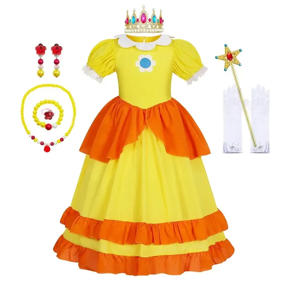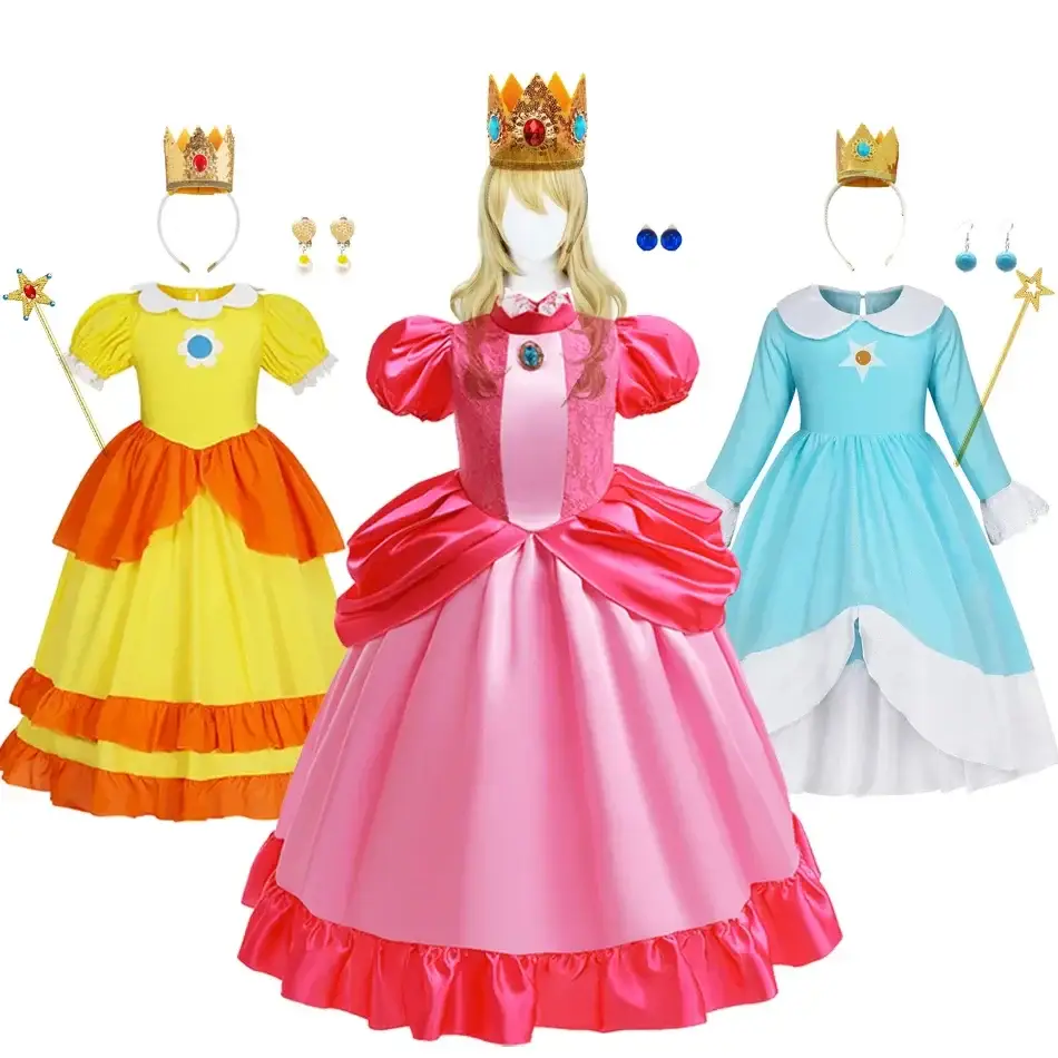 - Transformez les rêves en réalité avec cette robe de princesse qui allie qualité, style et enchantement. Que ce soit pour Rosalina, Peach ou Daisy, chaque modèle est conçu pour faire vivre à votre enfant une expérience magique digne des royaumes fantastiques. Disponible dans notre magasin de jouets spécialisé, cette robe princesse Rosalina et ses variantes Peach et Daisy sont le cadeau idéal pour toute occasion spéciale. Commandez dès maintenant et offrez un souvenir inoubliable qui transportera votre petite princesse dans un monde de magie et d’aventure !