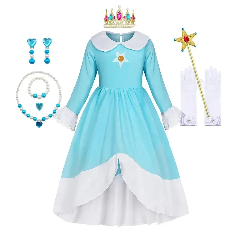 Robe Princesse Rosalina, Peach ou Daisy avec Accessoires – Polyester de Haute Qualité pour une Expérience Magique