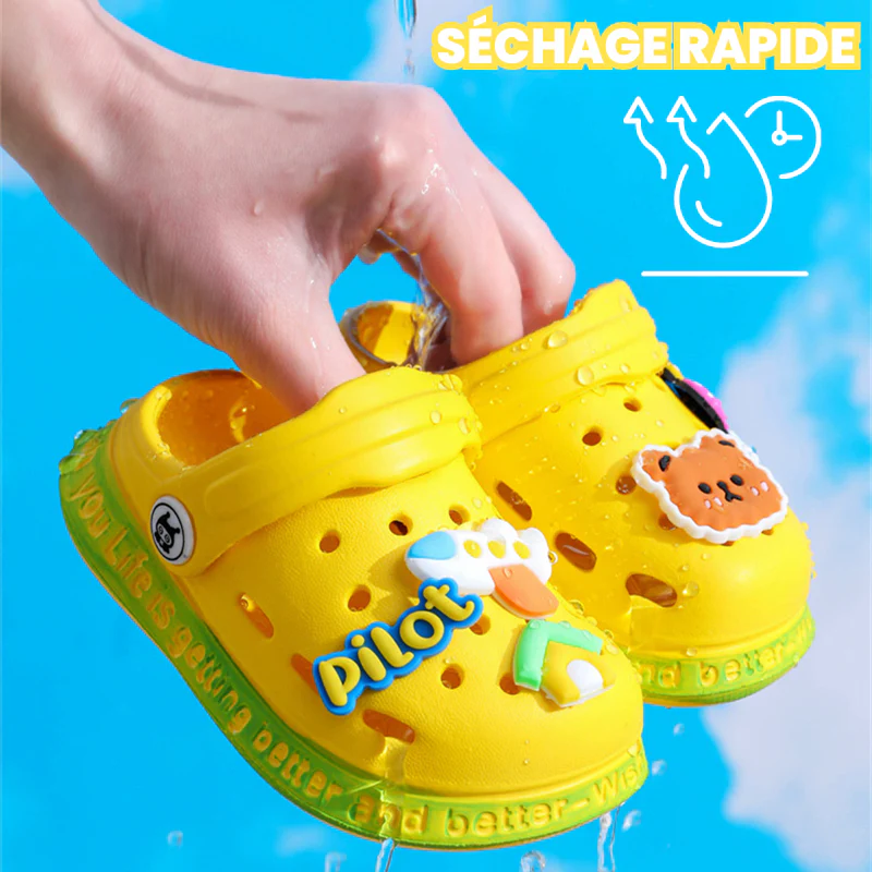 La semelle spéciale des SunnyShoes™ permet une adhérence optimale même sur surfaces mouillées, tandis que leur flexibilité permet aux petits pieds de bouger librement, sans inconfort.