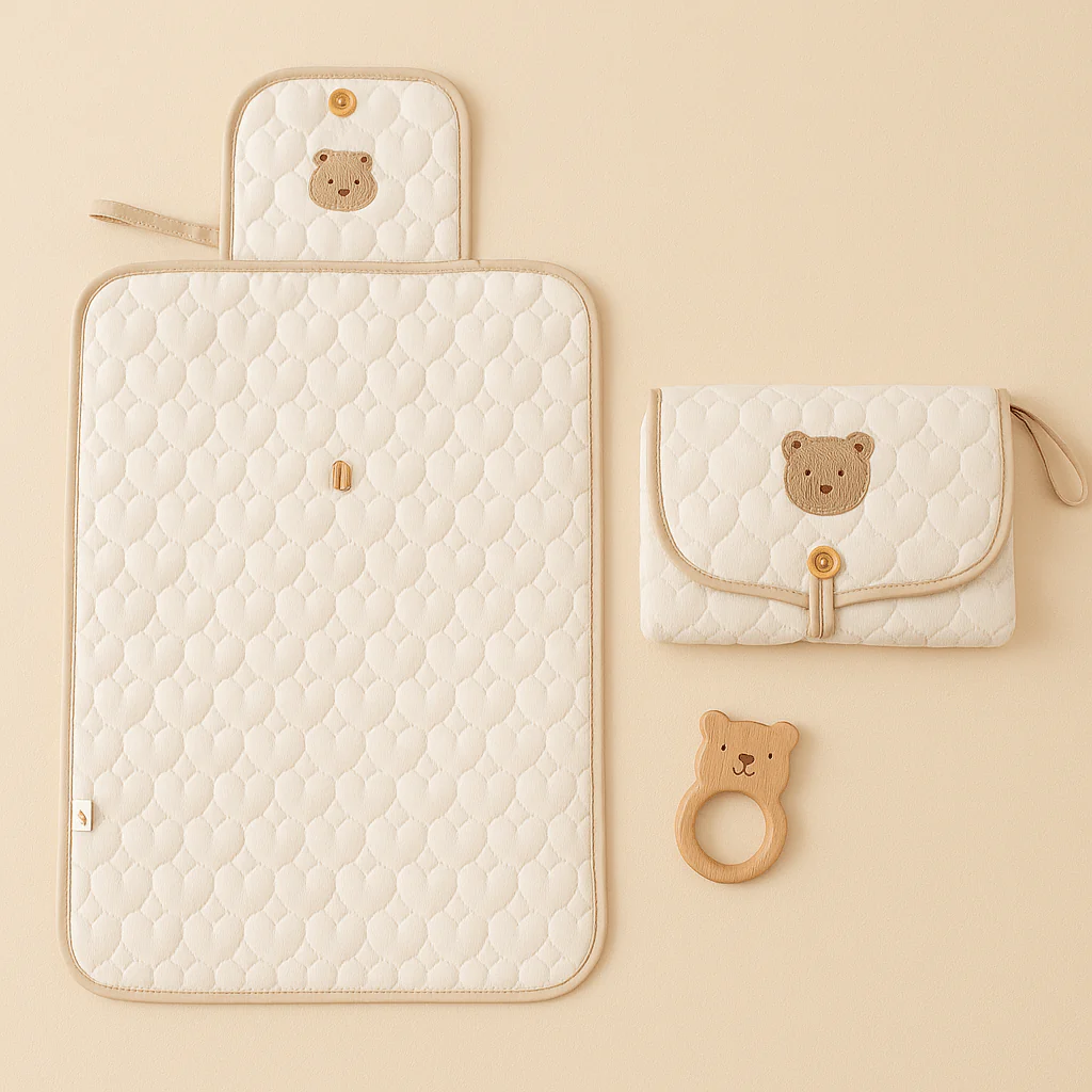 Changer bébé en toute sérénité, où que vous soyez, sans compromis sur le confort ni l’hygiène ? C’est désormais possible grâce à notre tapis à langer nomade, pensé pour s’intégrer parfaitement dans votre quotidien et vous accompagner dans toutes vos aventures.