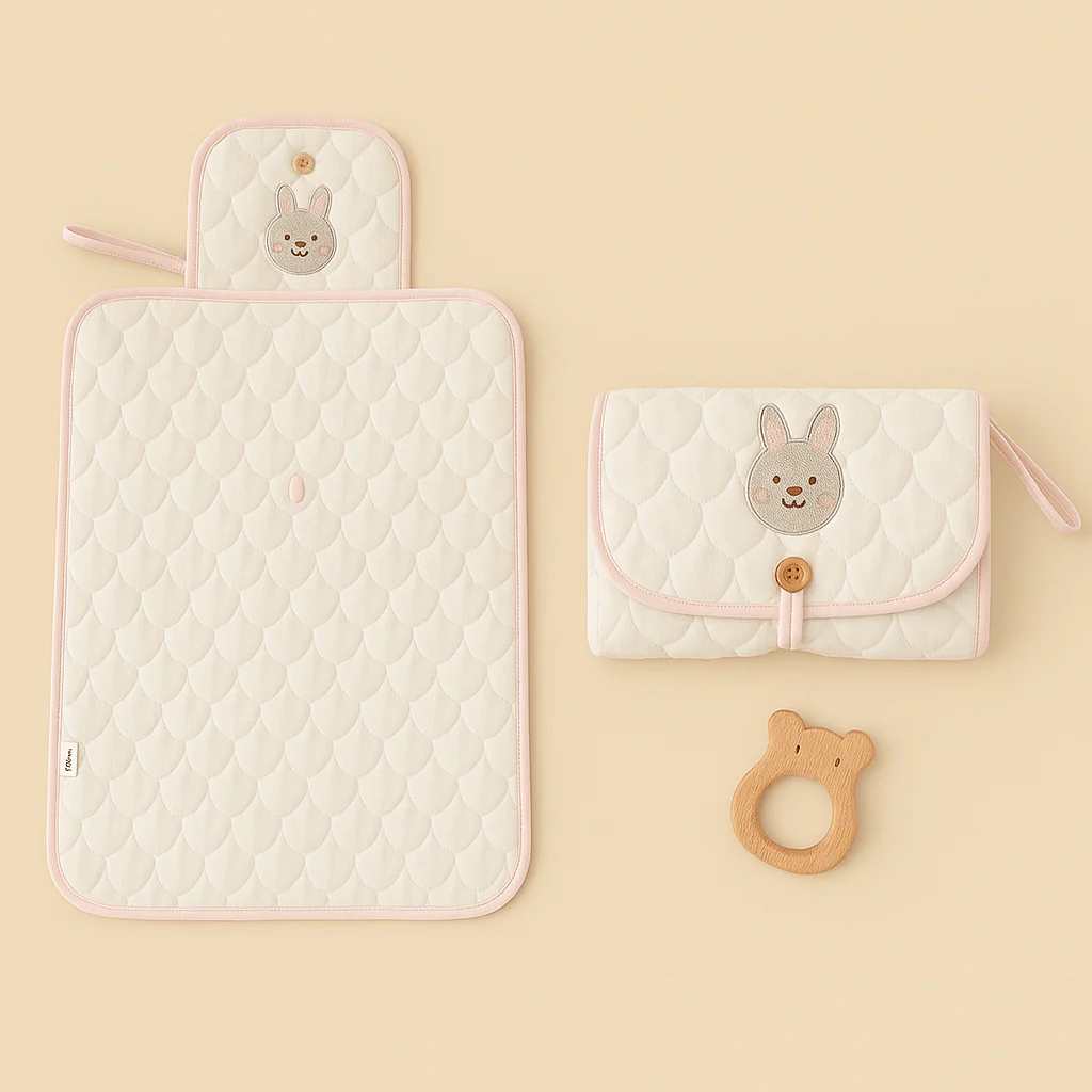 Ce tapis à langer allie esthétisme et fonctionnalité. Son design soigné, rehaussé d’une adorable broderie, apporte une touche de douceur à chaque change. Pliable en un clin d’œil, il se glisse aisément dans votre sac sans encombrer.