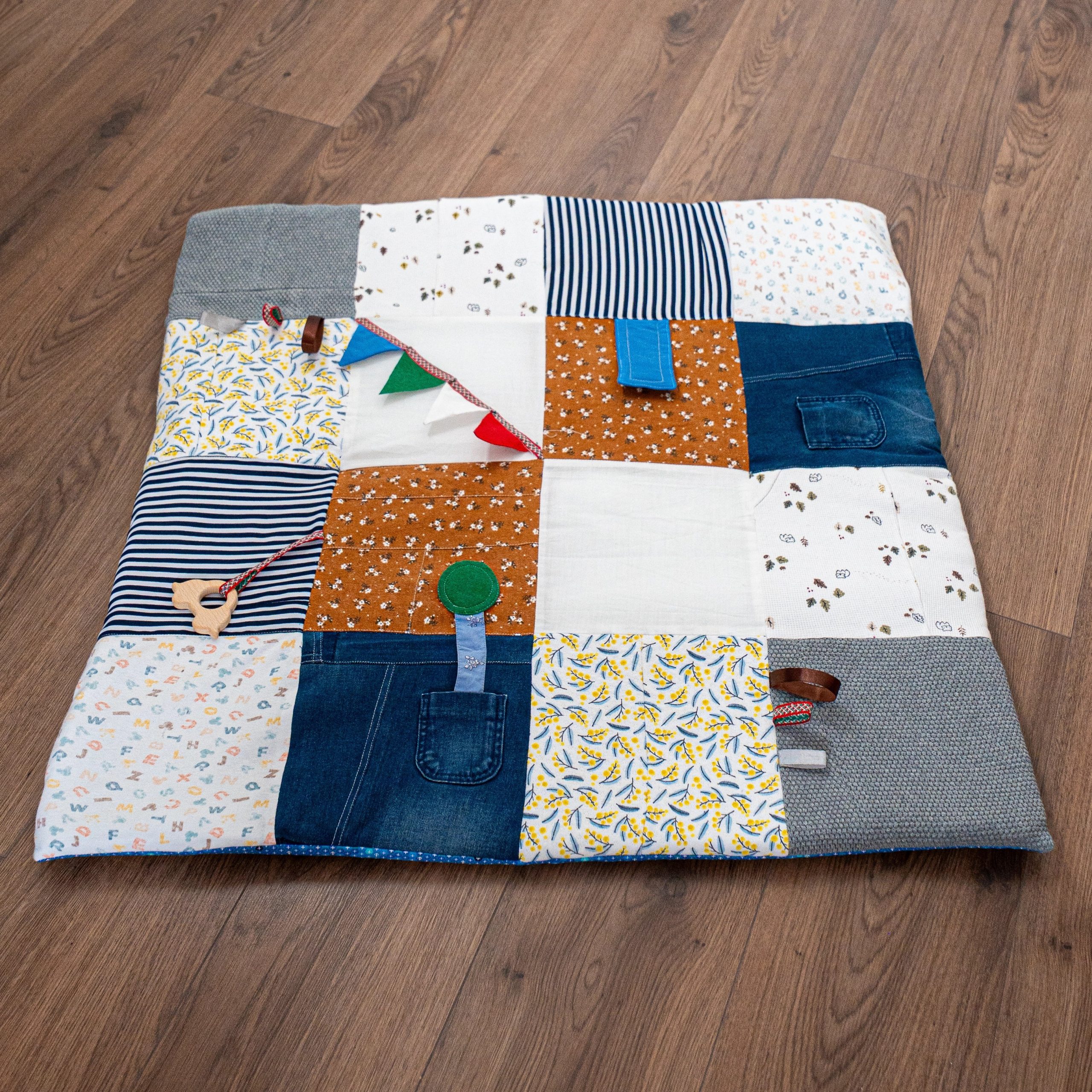 Offrez un espace de découverte tout doux à bébé avec ce tapis d’éveil fait main.