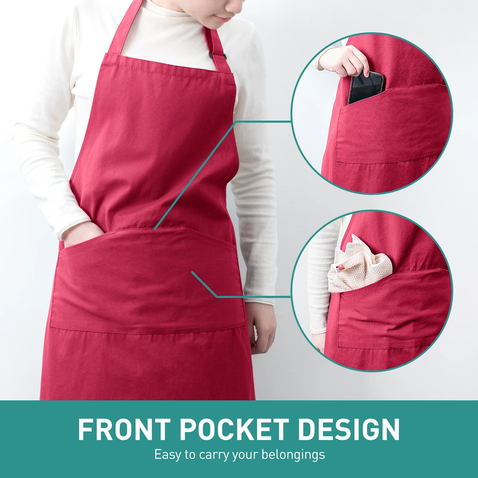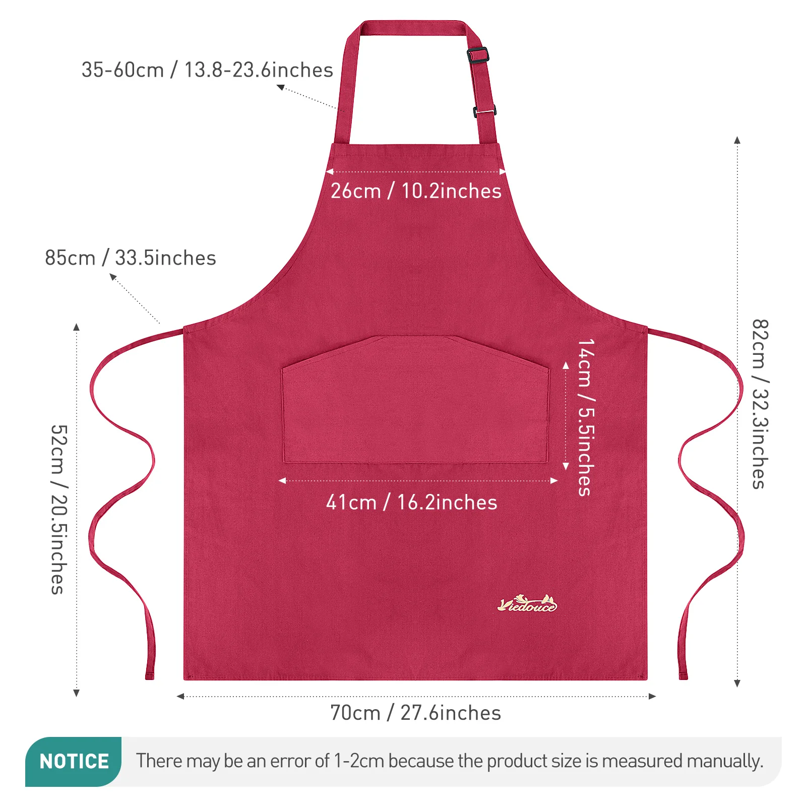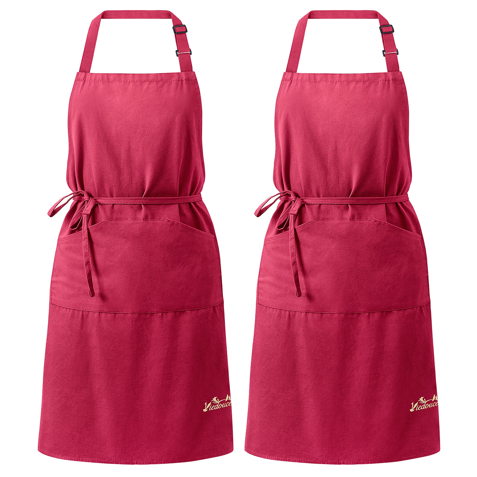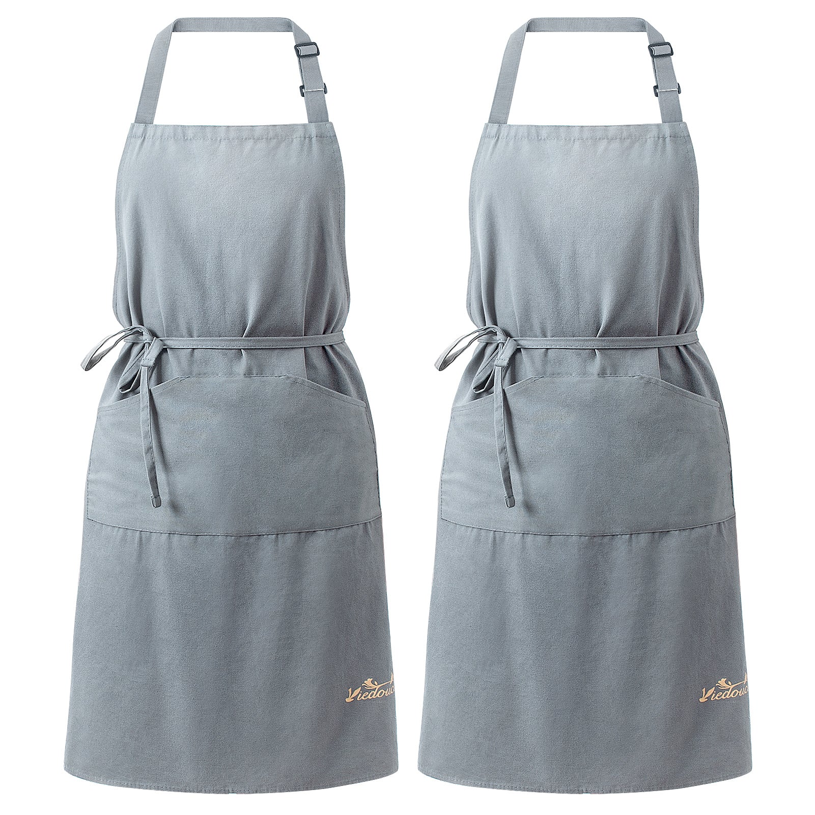 Viedouce 2 Pack Tabliers de Cuisine,Coton Tablier avec Poches pour Homme Femme,Réglable Tabliers pour Barbecue Jardin,Café,Tablier Pour Chef,Boulanger,Serveurs,Serveuse