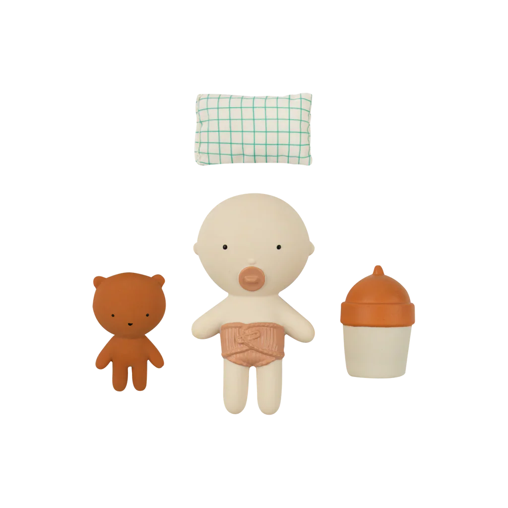 Gommu family is getting bigger or maybe should we say smaller? Find Baby Gommu in POCKET size! Baby Gommu comes with its best friend bear, a bottle of milk and a cushioned pillow for nap time. All these toys in one carboard bed for long hours of play!